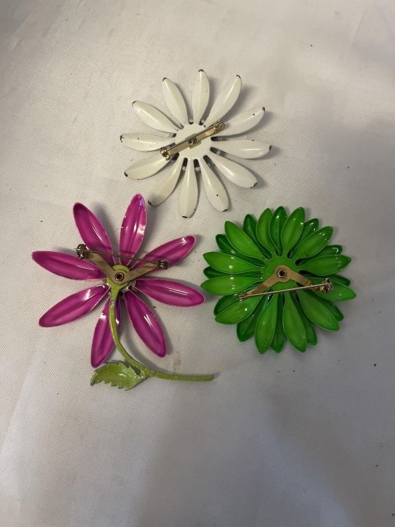 THREE RETRO ENAMEL FLOWER BROOCHES