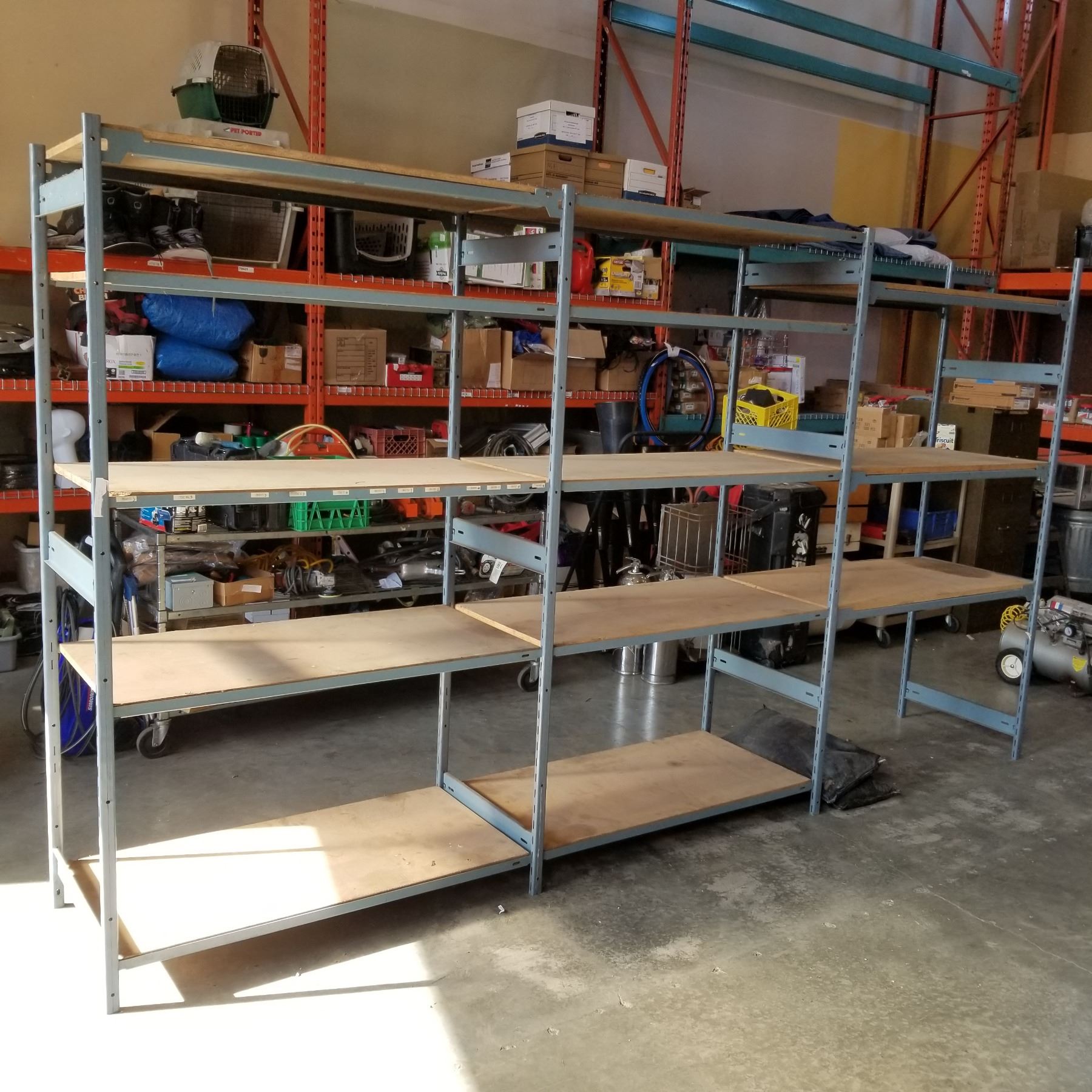 THREE SECTIONS METAL GREY SECTIONAL SHELVING WITH SHELVES