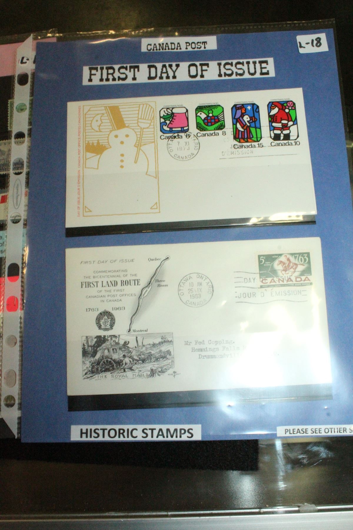 THREE SLEEVES OF COLLECTIBLE FIRST DAY OF ISSUE AND OTHER STAMPS AND PINS