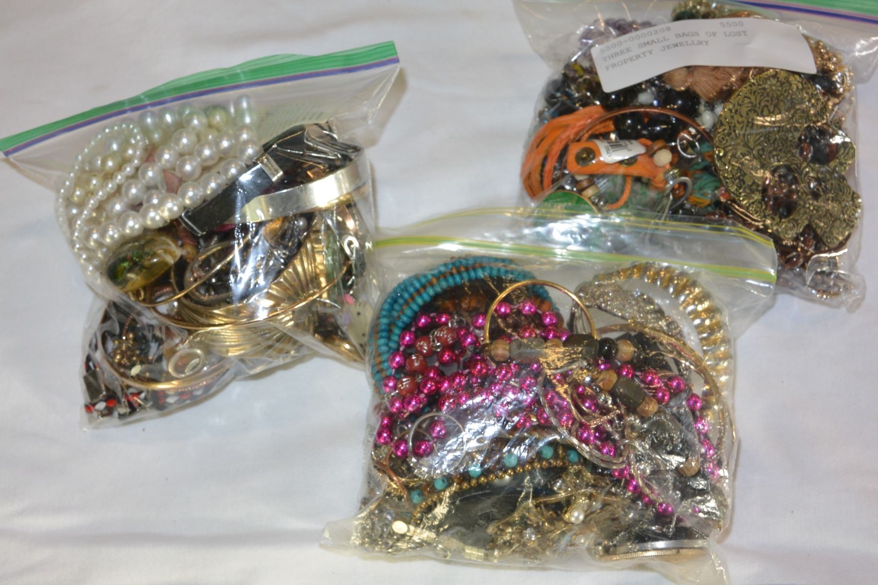 THREE SMALL BAGS OF LOST PROPERTY JEWELLRY