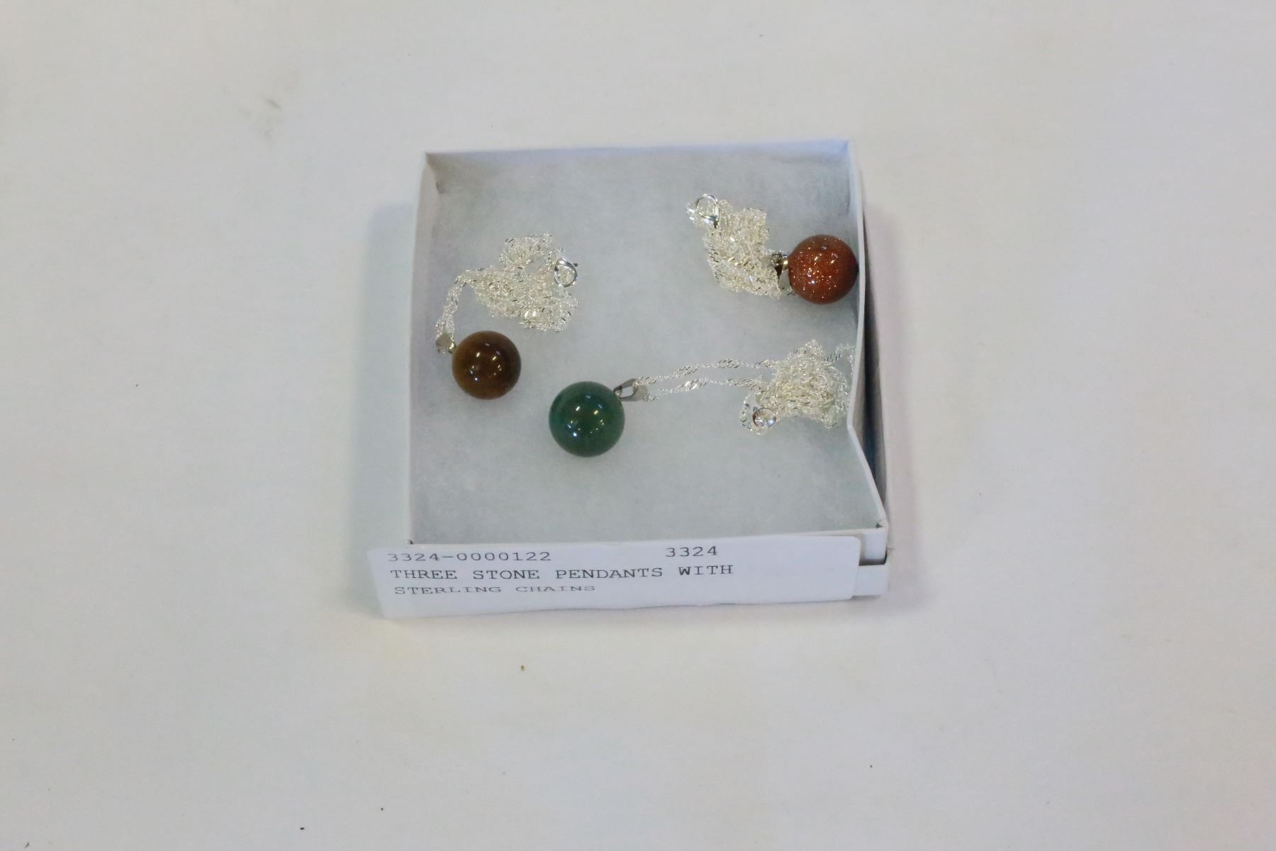 THREE STONE PENDANTS WITH STERLING CHAINS