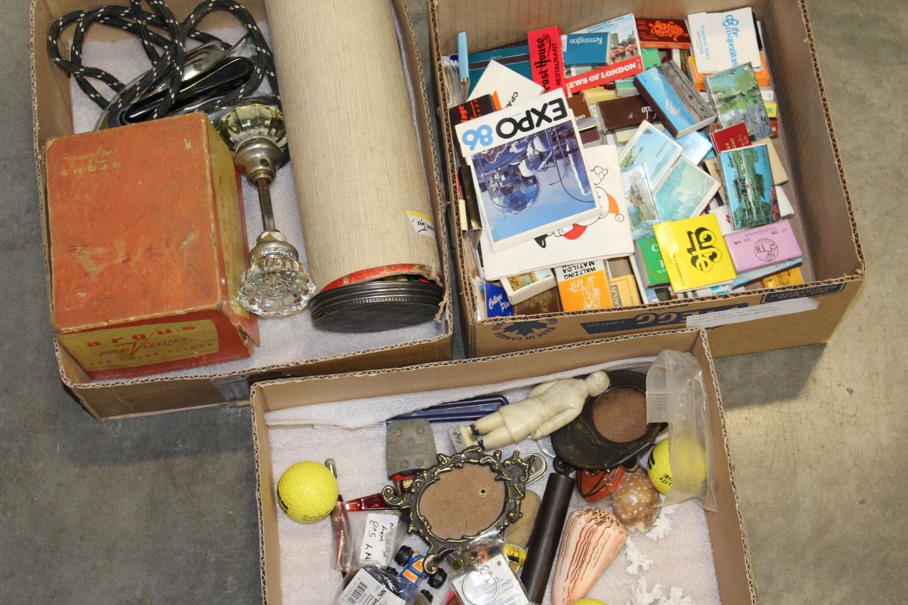 THREE TRAYS OF VARIOUS COLLECTIBLES AND MATCHES