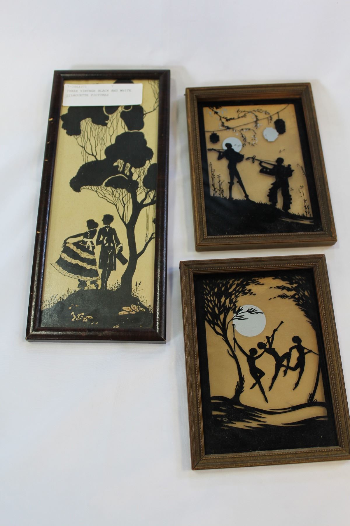 THREE VINTAGE BLACK AND WHITE SILHOUETTE PICTURES