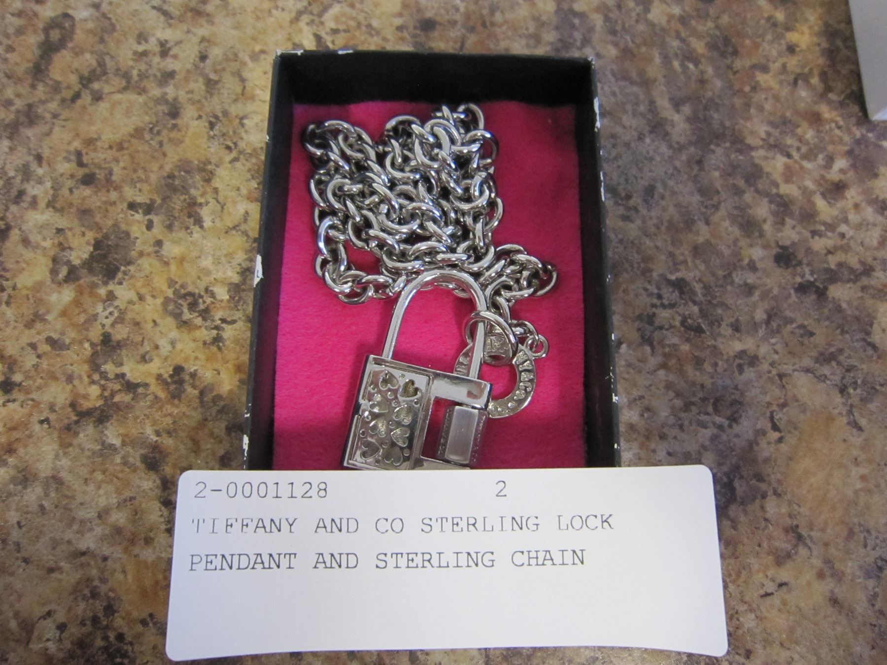 TIFFANY AND CO STERLING LOCK PENDANT AND STERLING CHAIN