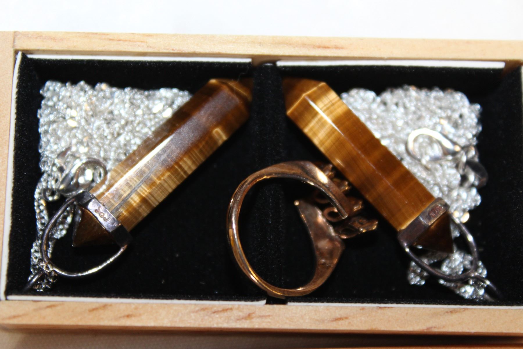 TIGER EYE AND STERLING PENDANTS AND RING