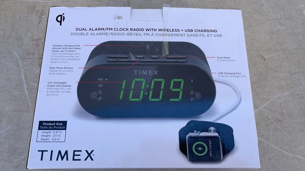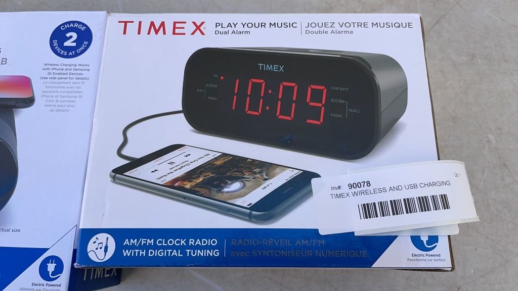 TIMEX WIRELESS AND USB CHARGING CLOCK AND AMFM CLOCK RADIO - TESTED WORKING