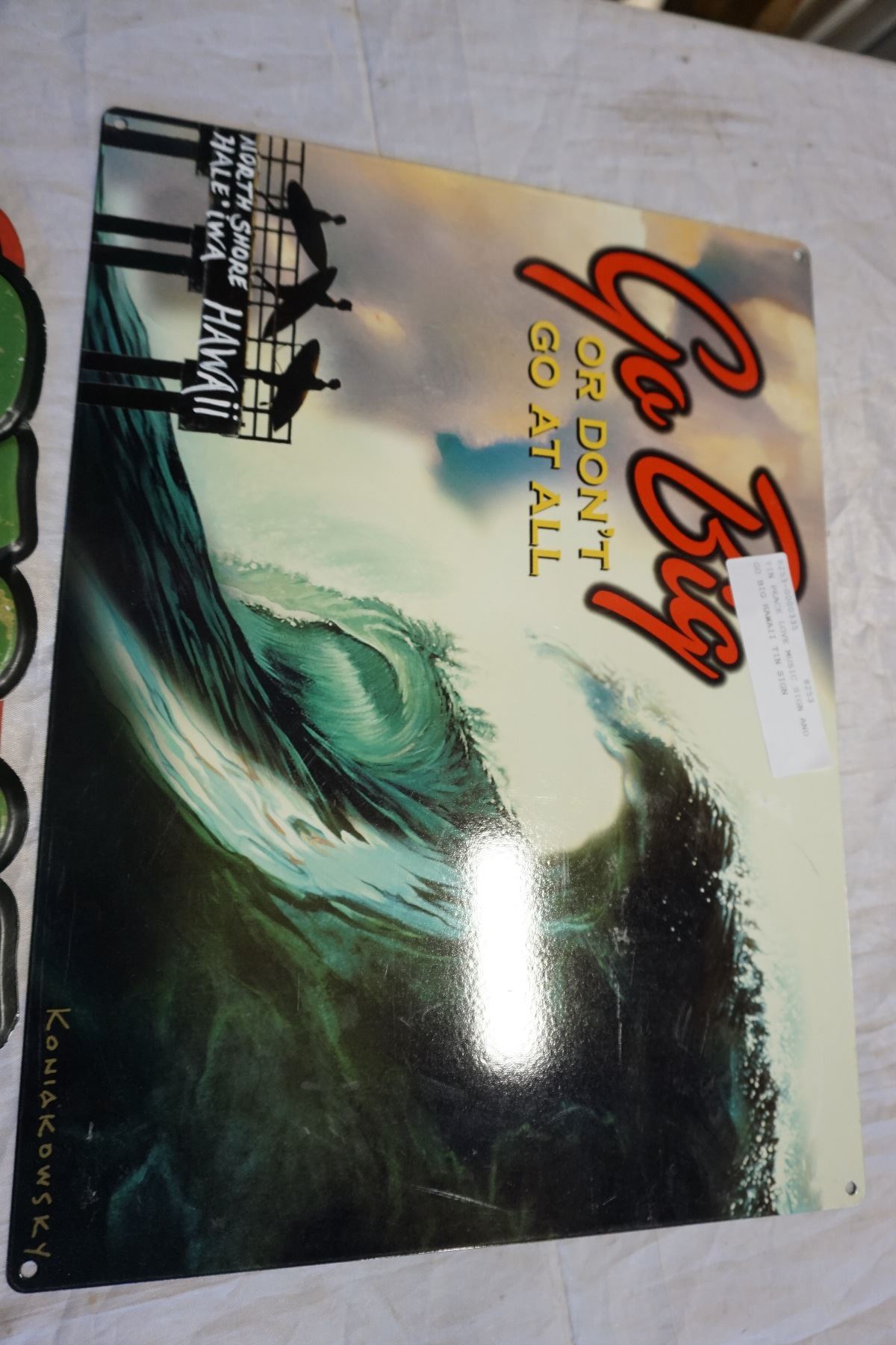 TIN PEACE LOVE MUSIC SIGN AND GO BIG HAWAII TIN SIGN