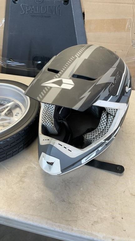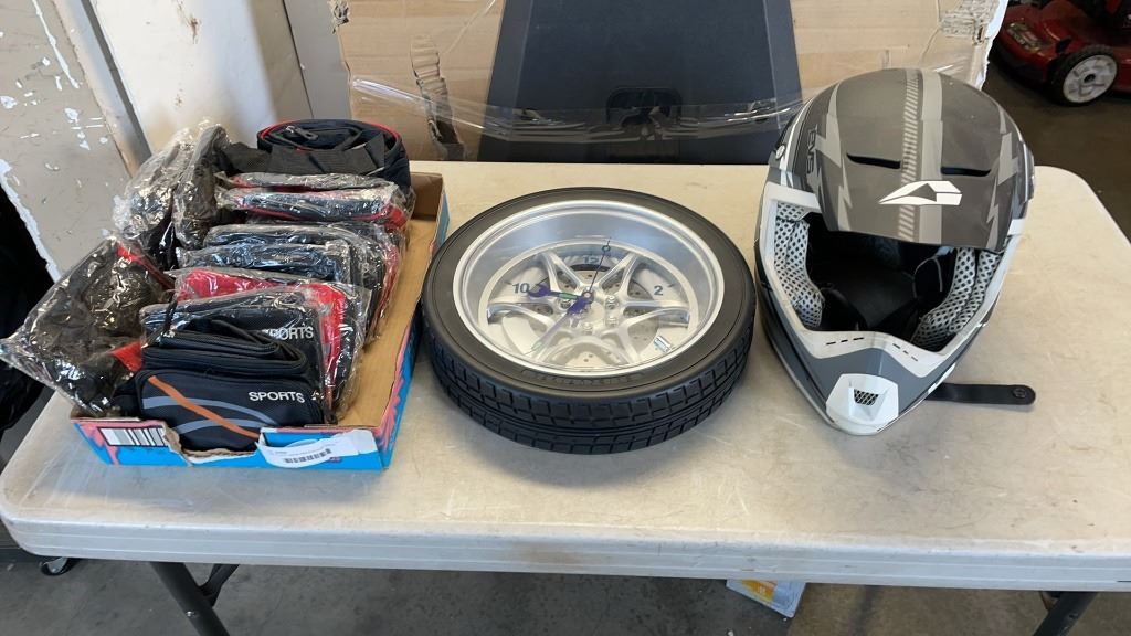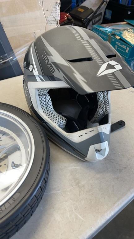 TIRE CLOCK, BAGS AND EVS SIZE LARGE DIRT BIKE HELMET