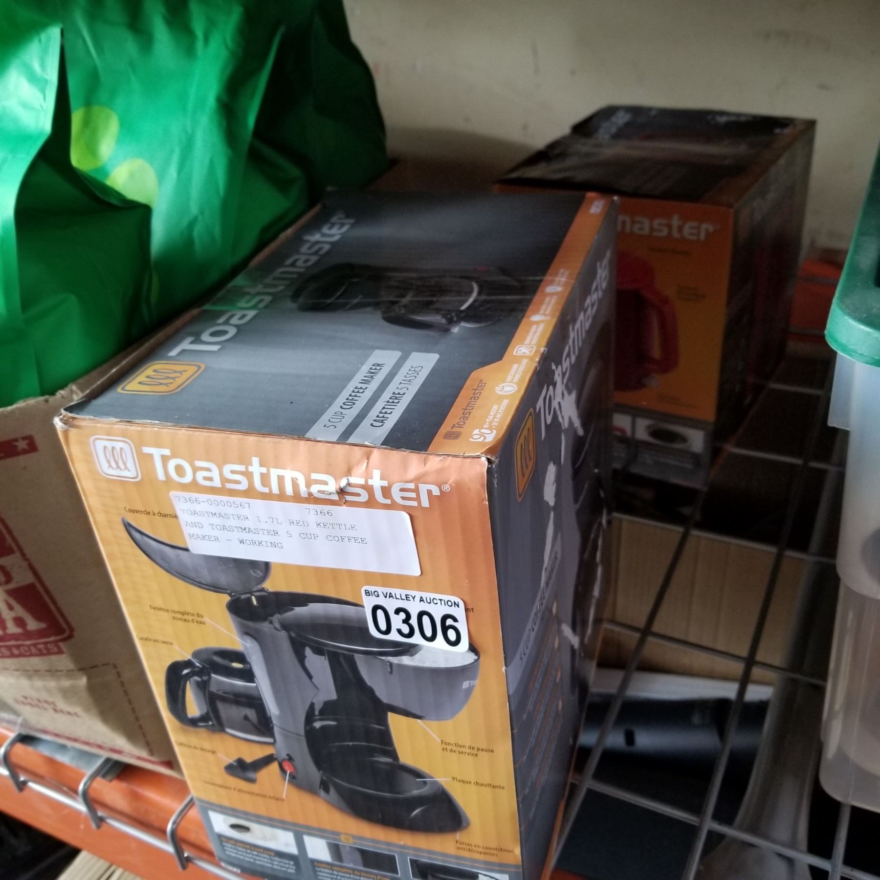 TOASTMASTER 1.7L RED KETTLE AND TOASTMASTER 5 CUP COFFEE MAKER - WORKING