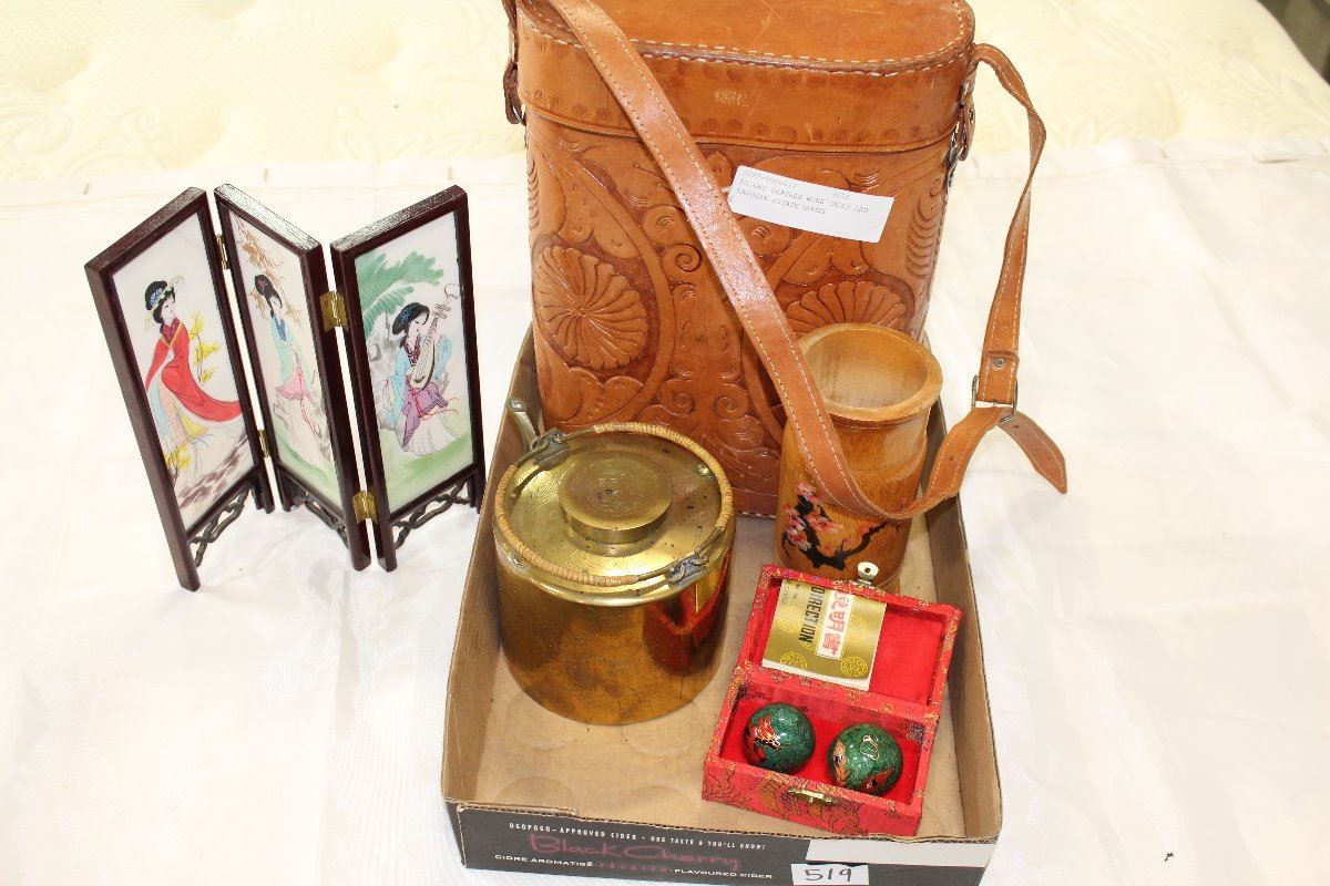 TOOLED LEATHER WINE CADDY AND EASTERN ESTATE GOODS