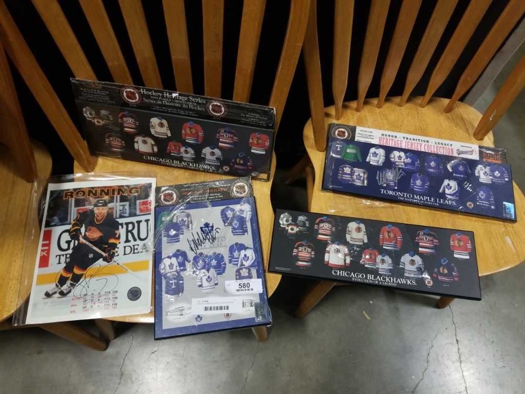 TORONTO MAPLE LEAFS PLAQUE SIGNED BY WENDLE CLARK WITH BLACKHAWKS PLAQUES AND 8X10 SIGNED CLIFF RONNING