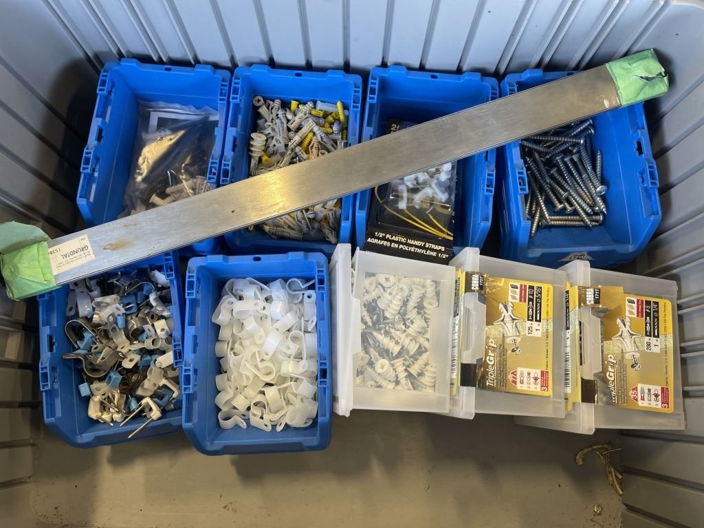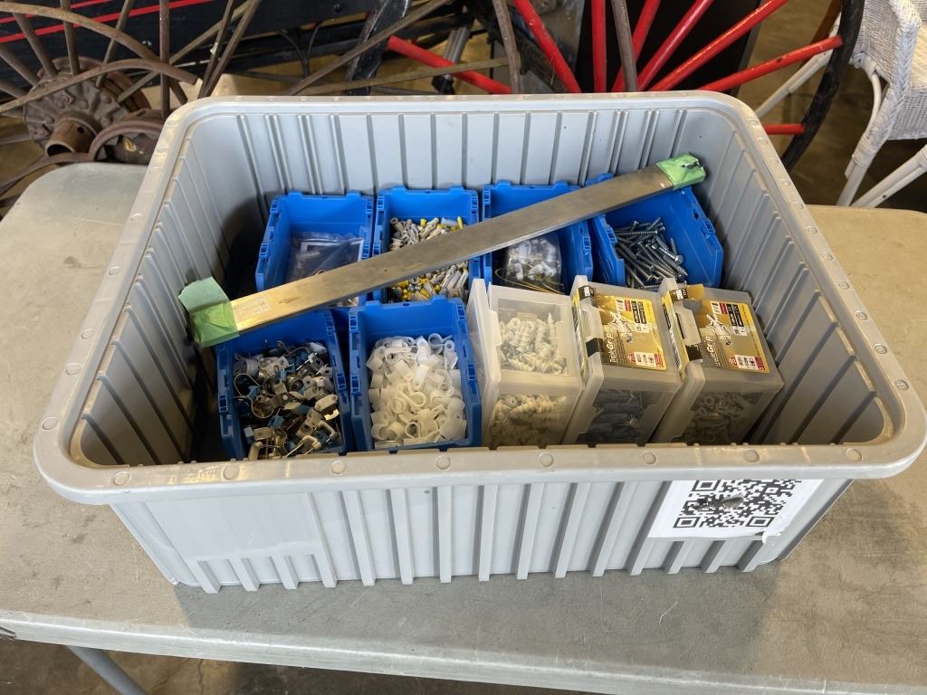 TOTE OF ASSORTED HARDWARE AND FASTENERS