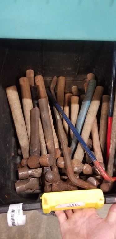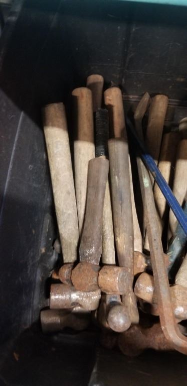 TOTE OF BALL PEEN HAMMERS AND PRY BARS