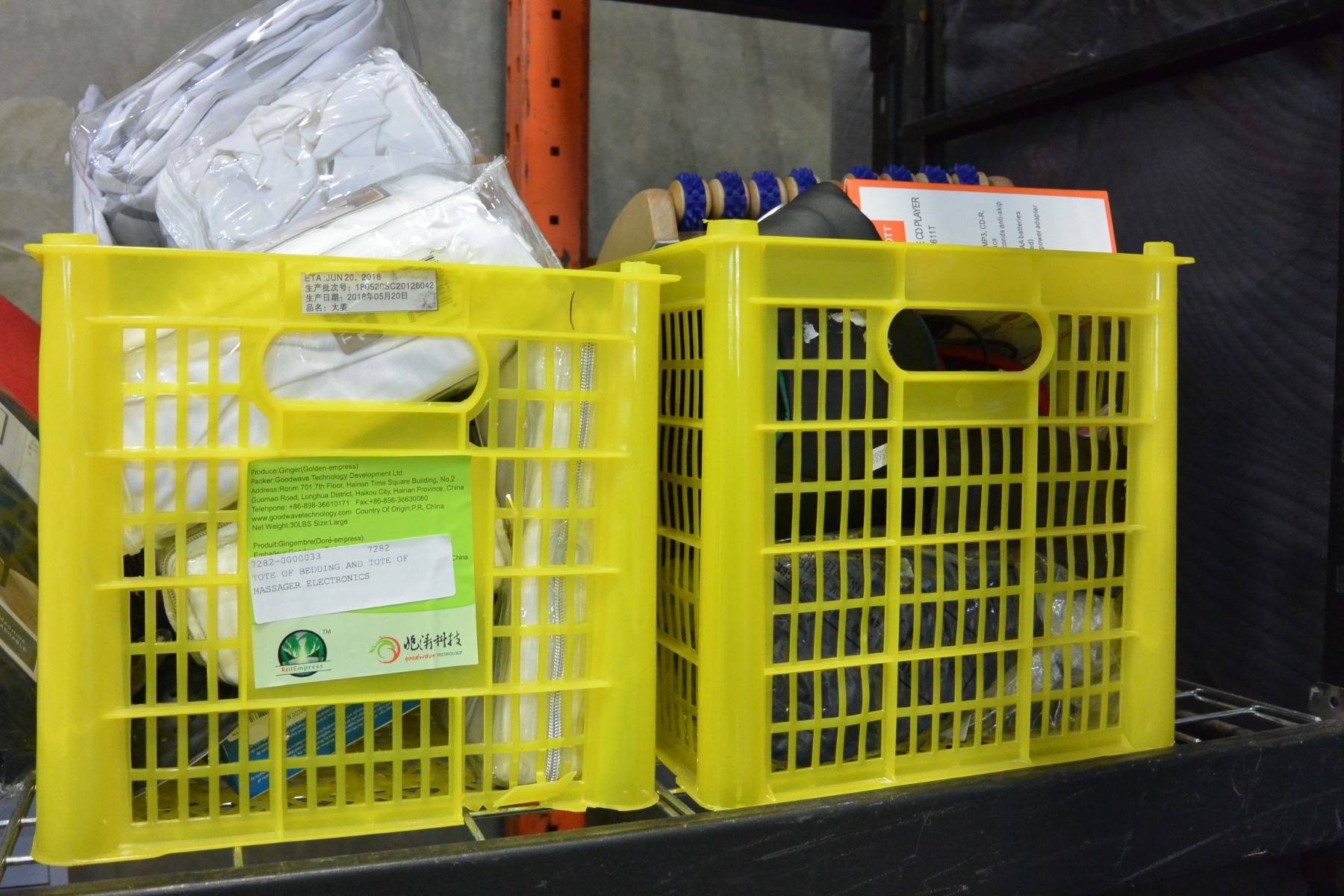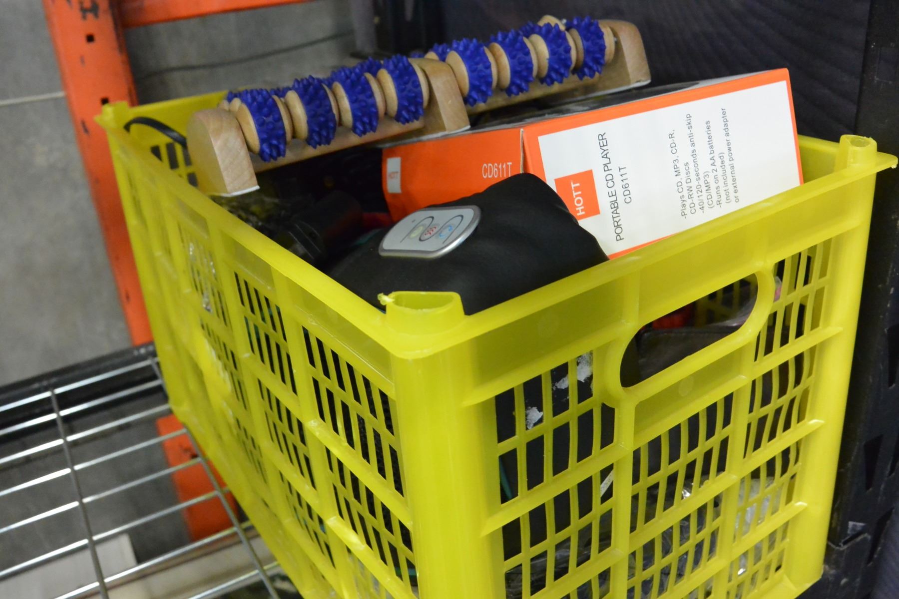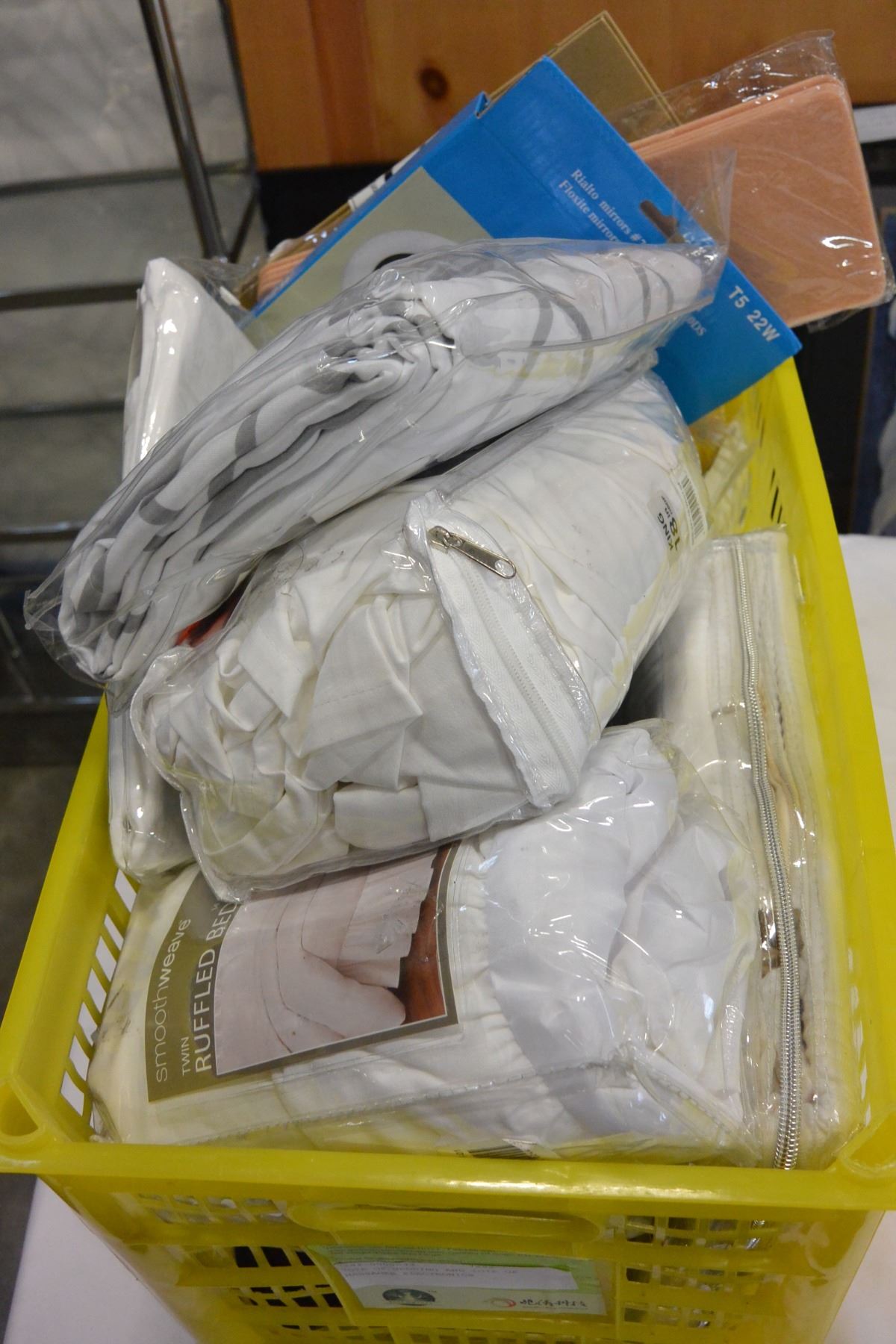 TOTE OF BEDDING AND TOTE OF MASSAGER ELECTRONICS