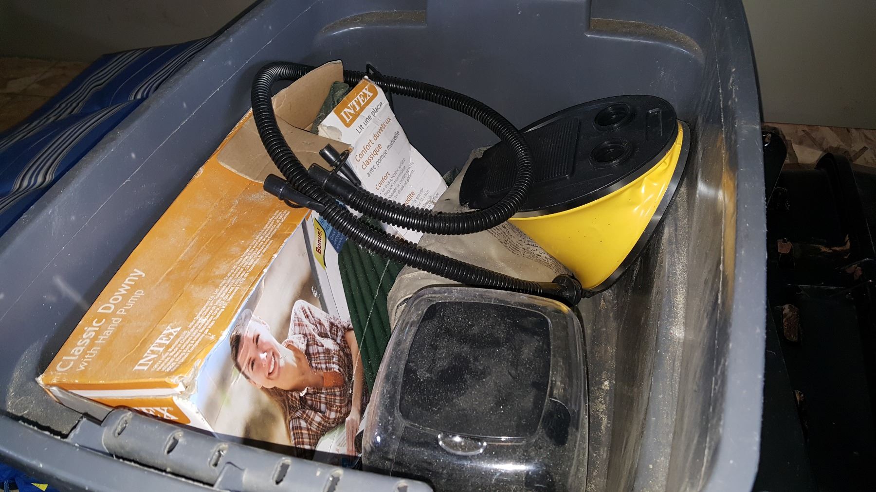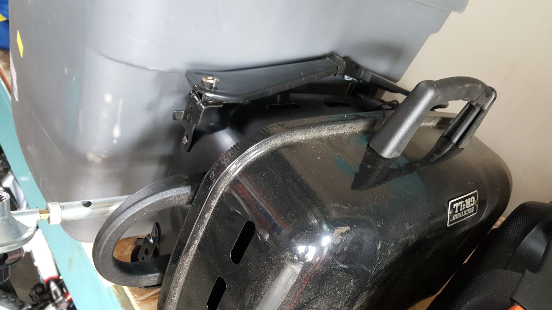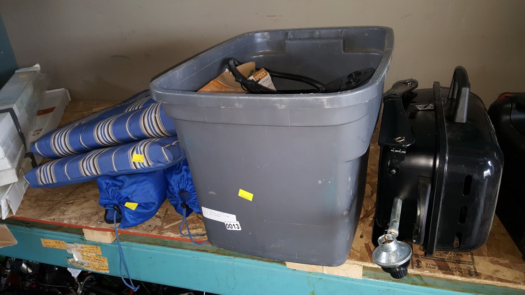 TOTE OF CAMPING GRILL, 2 CAMP CHAIRS, AND LOUNGER
