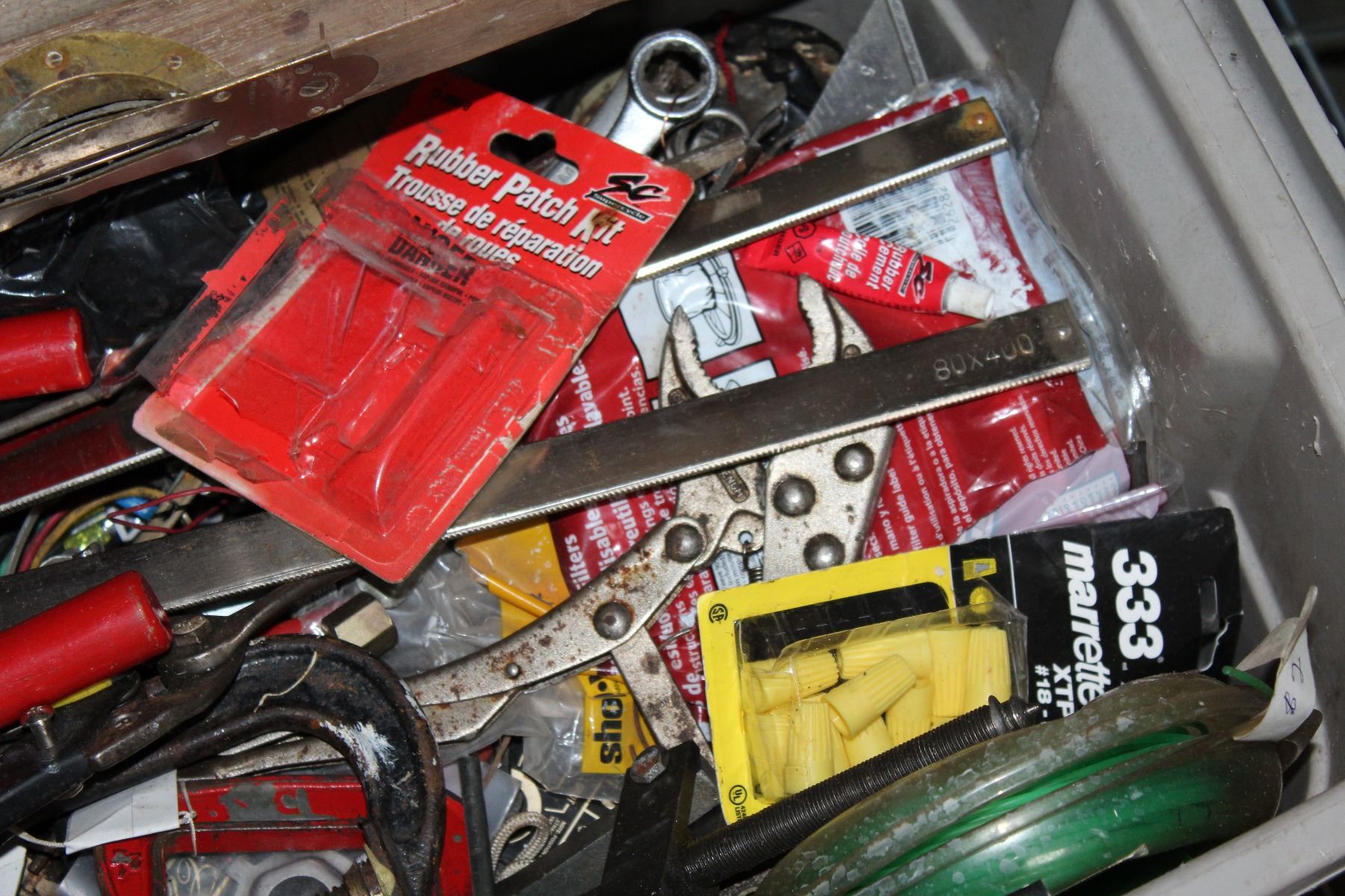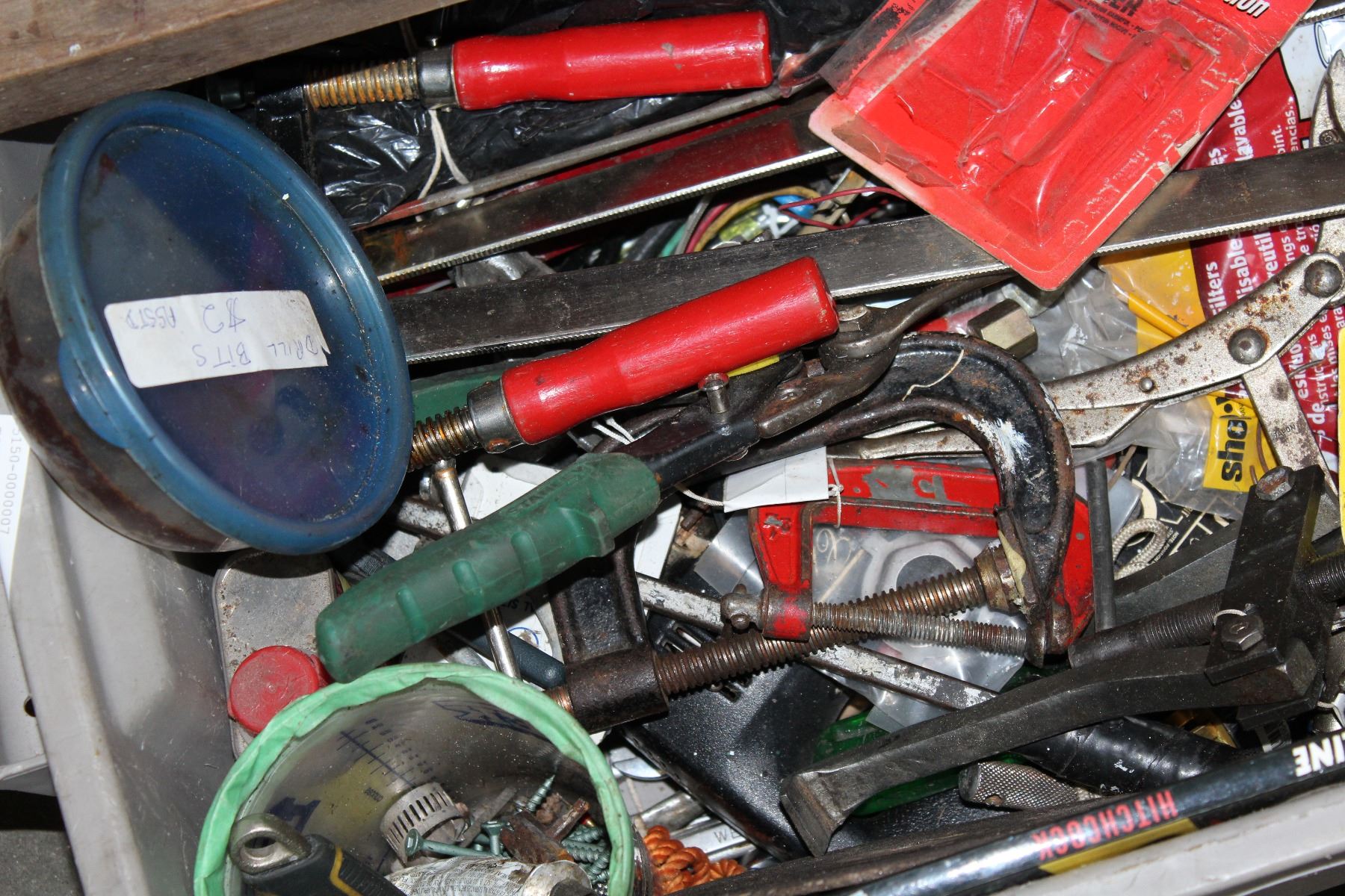 TOTE OF CLAMPS AND TOOLS