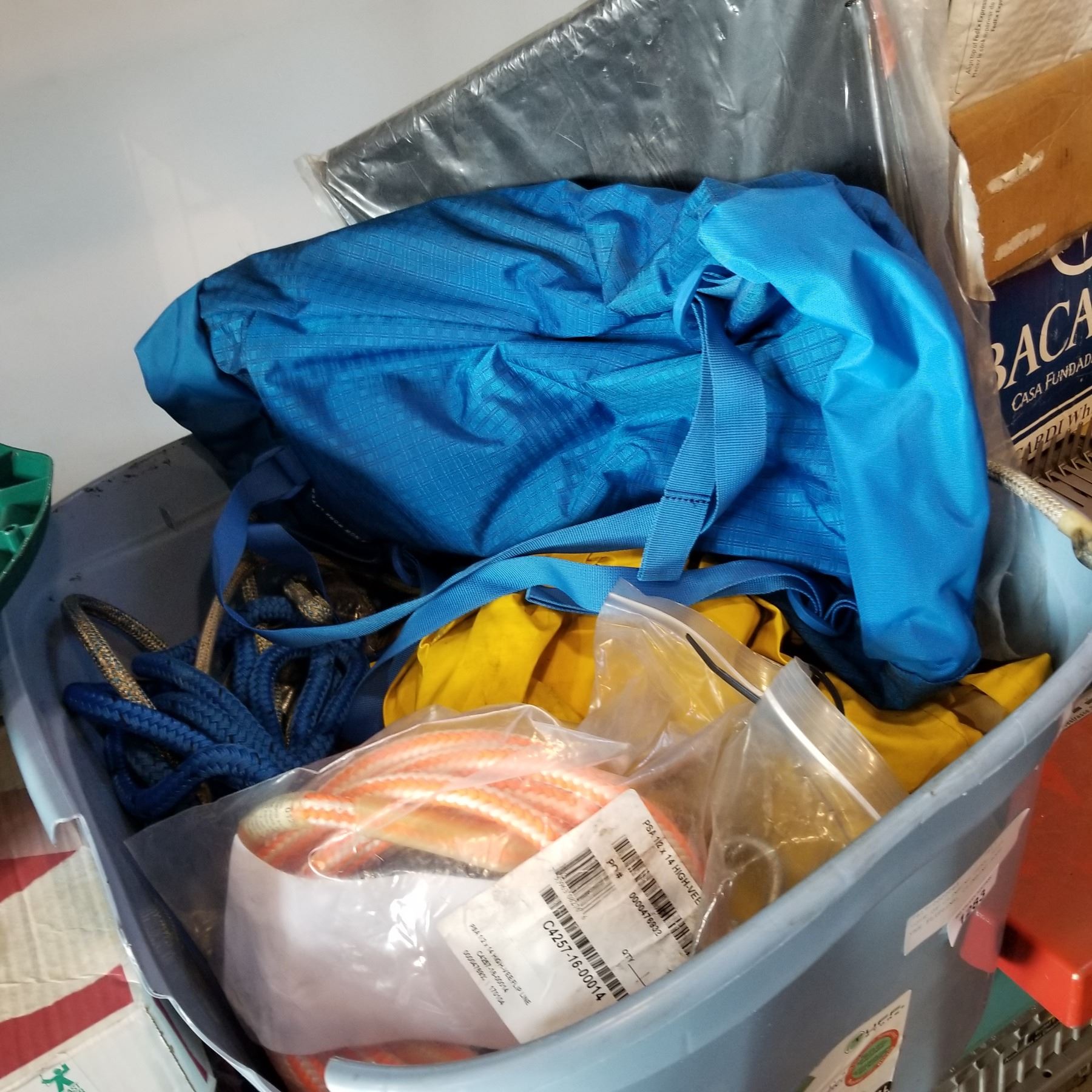 TOTE OF CLIMBING GEAR, HIGH VEE FLIPLINE, CLIMBING ROPE