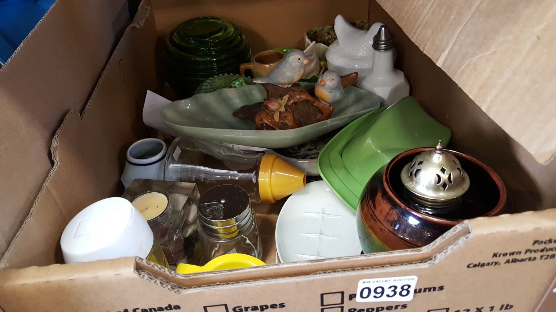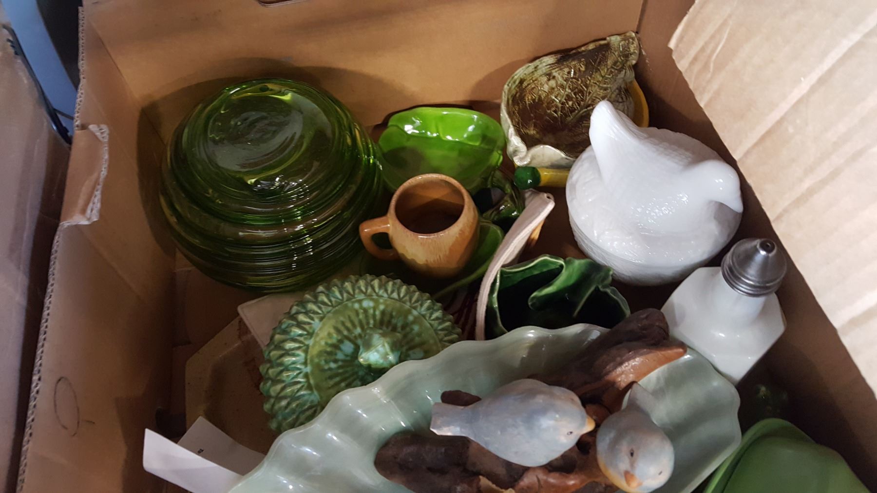 TOTE OF COLLECTIBLES AND BIRD FIGURE