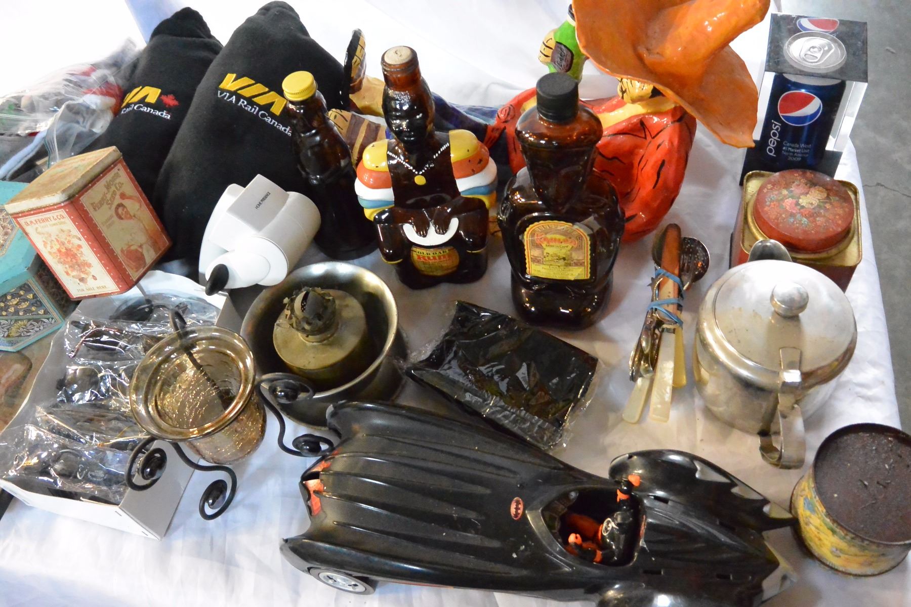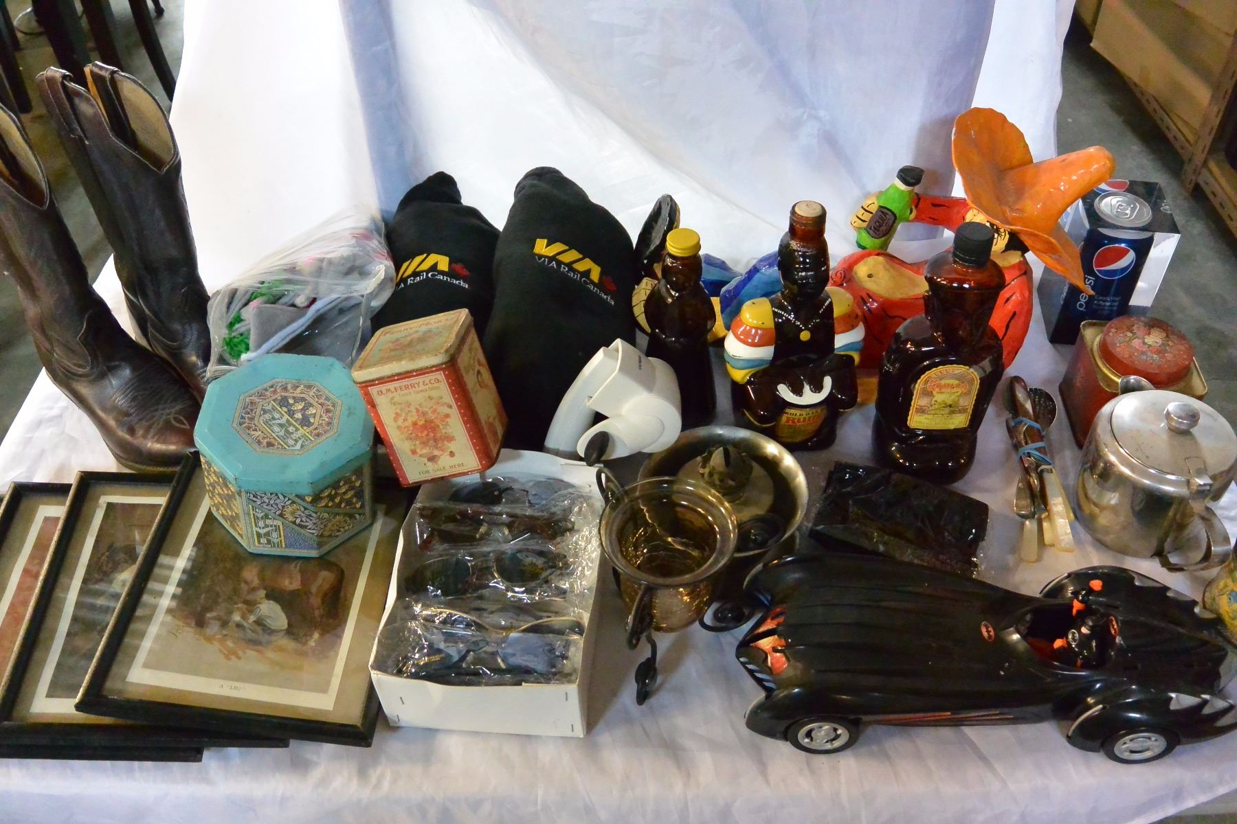 TOTE OF COLLECTIBLES AND SUN GLASSES