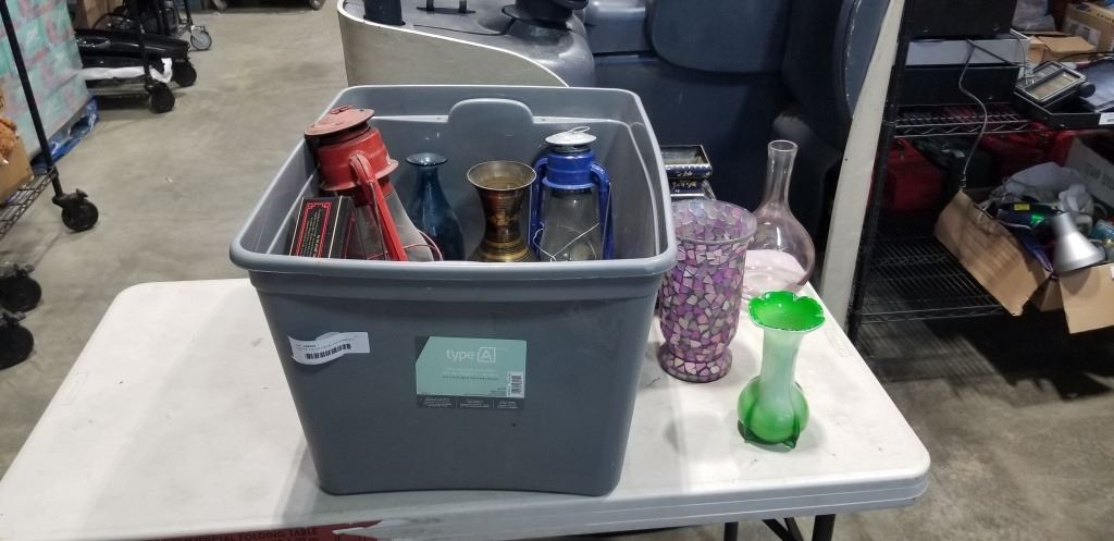 TOTE OF COLLECTIBLES, LANTERNS ETC
