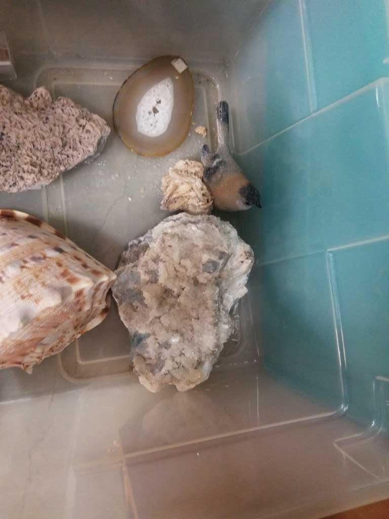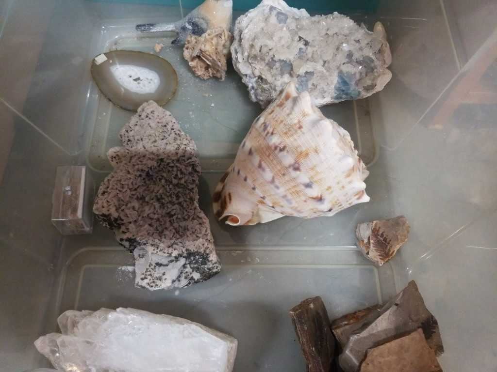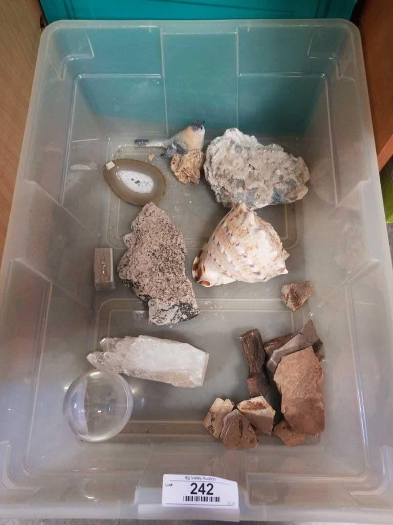 TOTE OF CRYSTAL AGATE, QURTZ AND CRYSTAL BALL