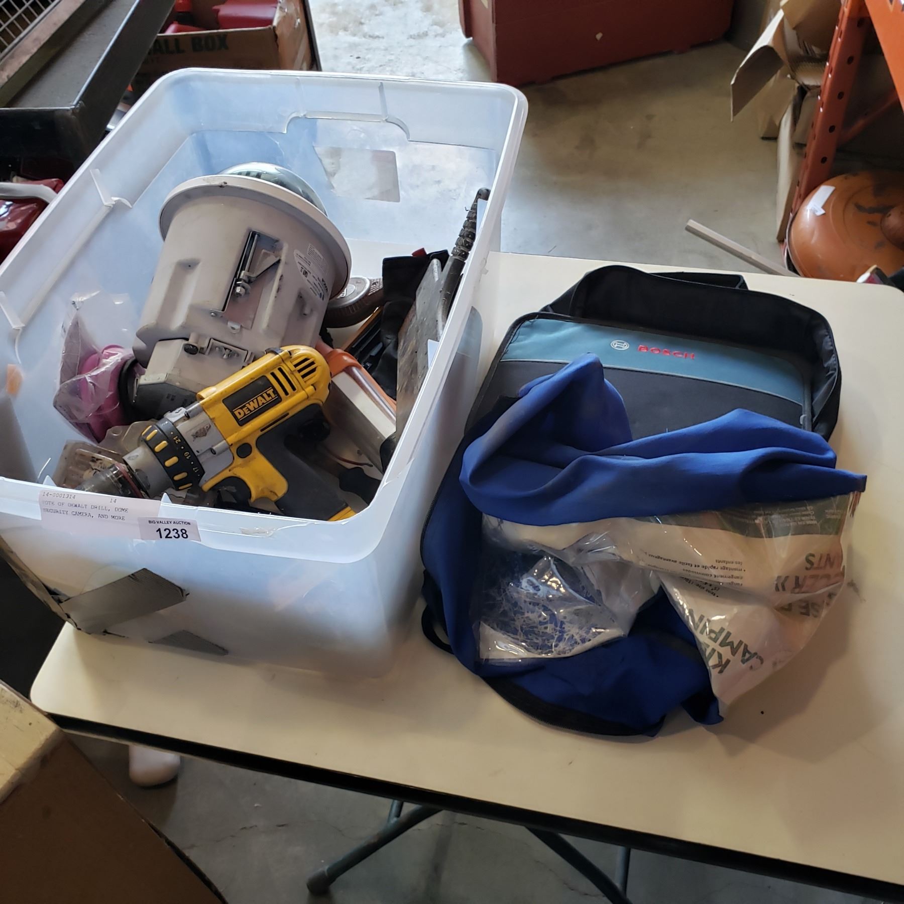 TOTE OF DEWALT DRILL, DOME SECURITY CAMERA, AND MORE