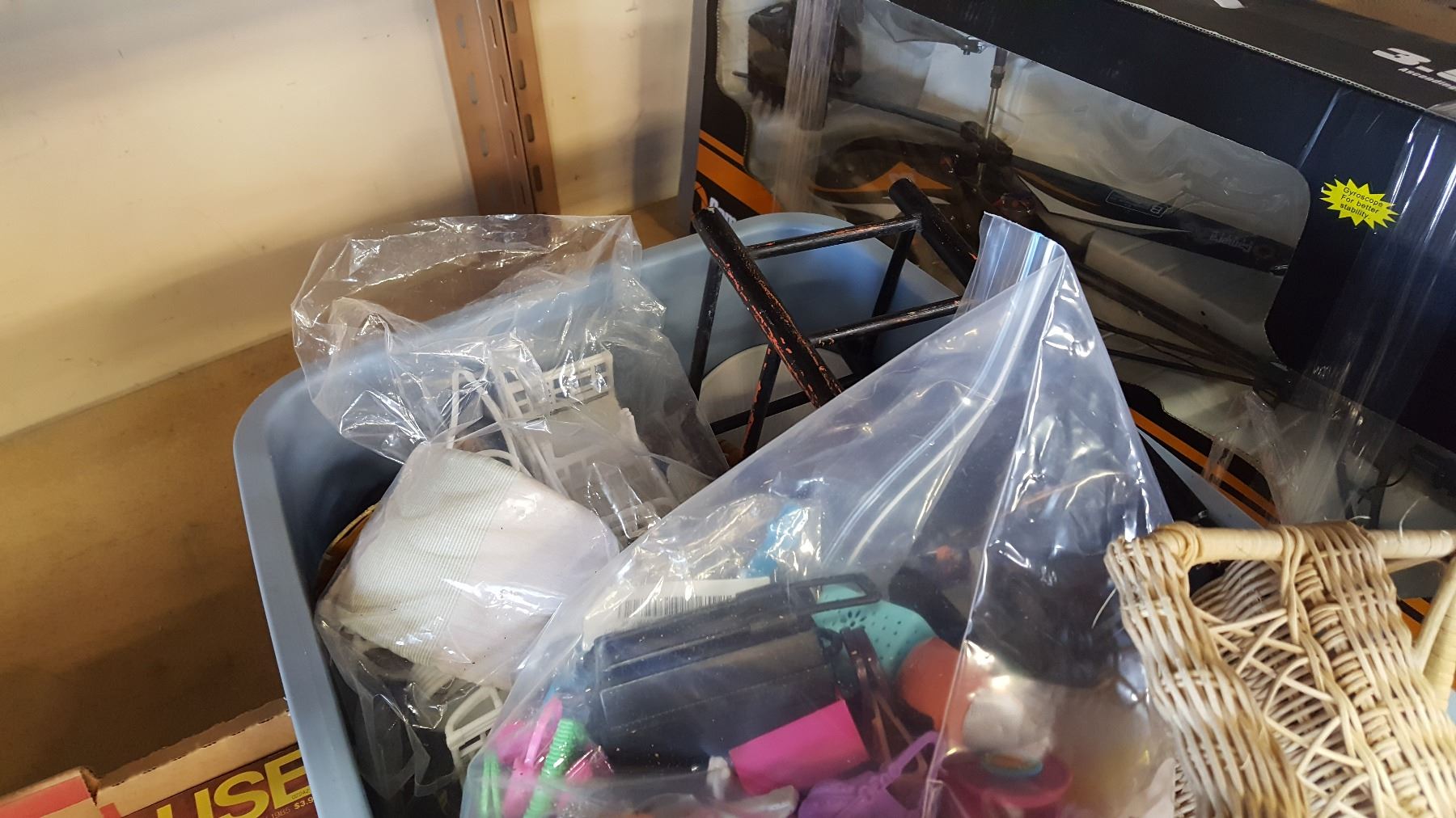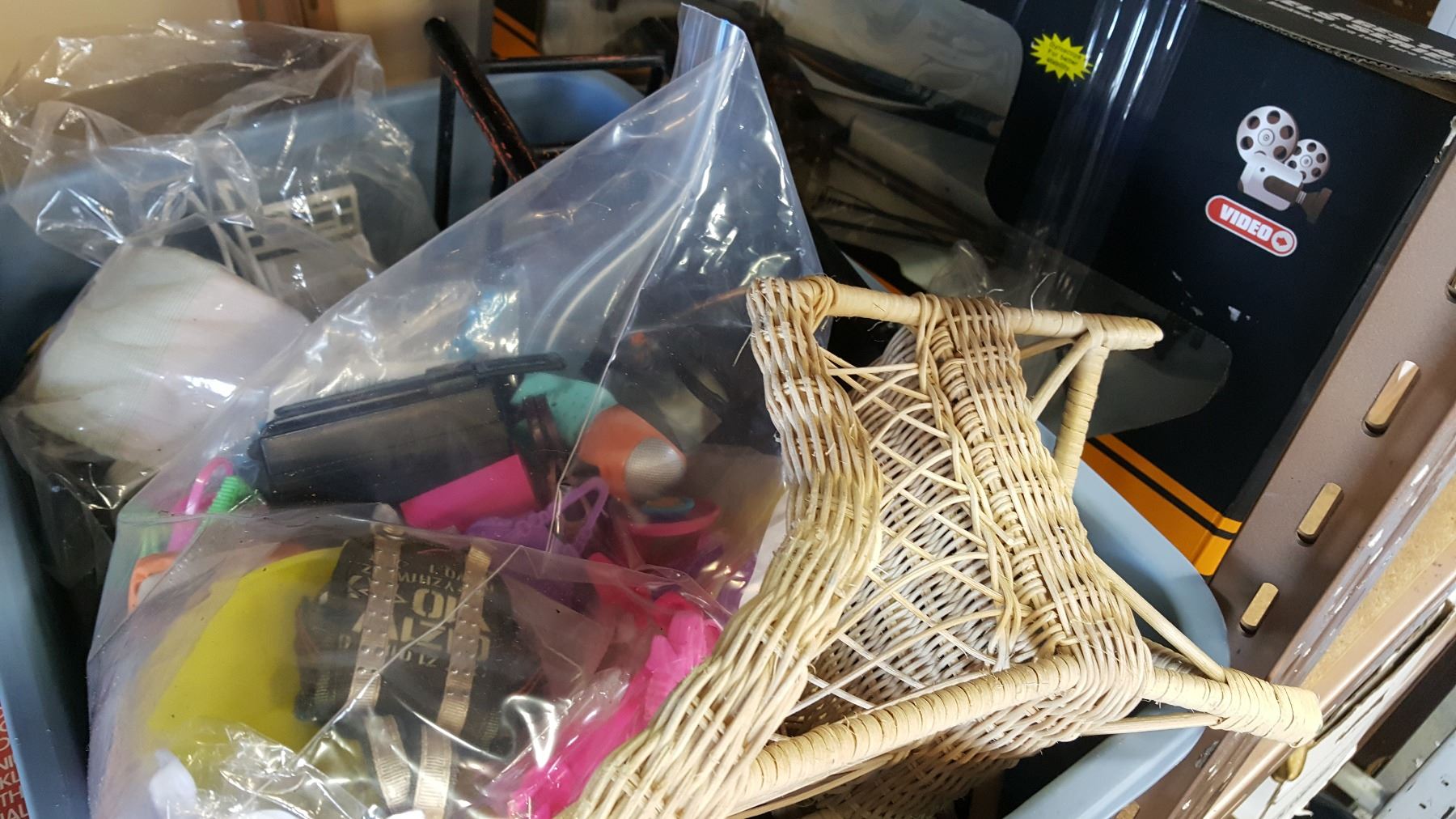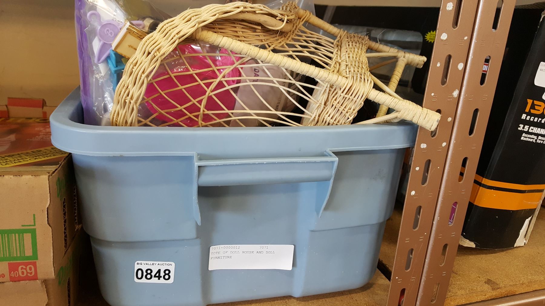 TOTE OF DOLL HOUSE AND DOLL FURNITURE