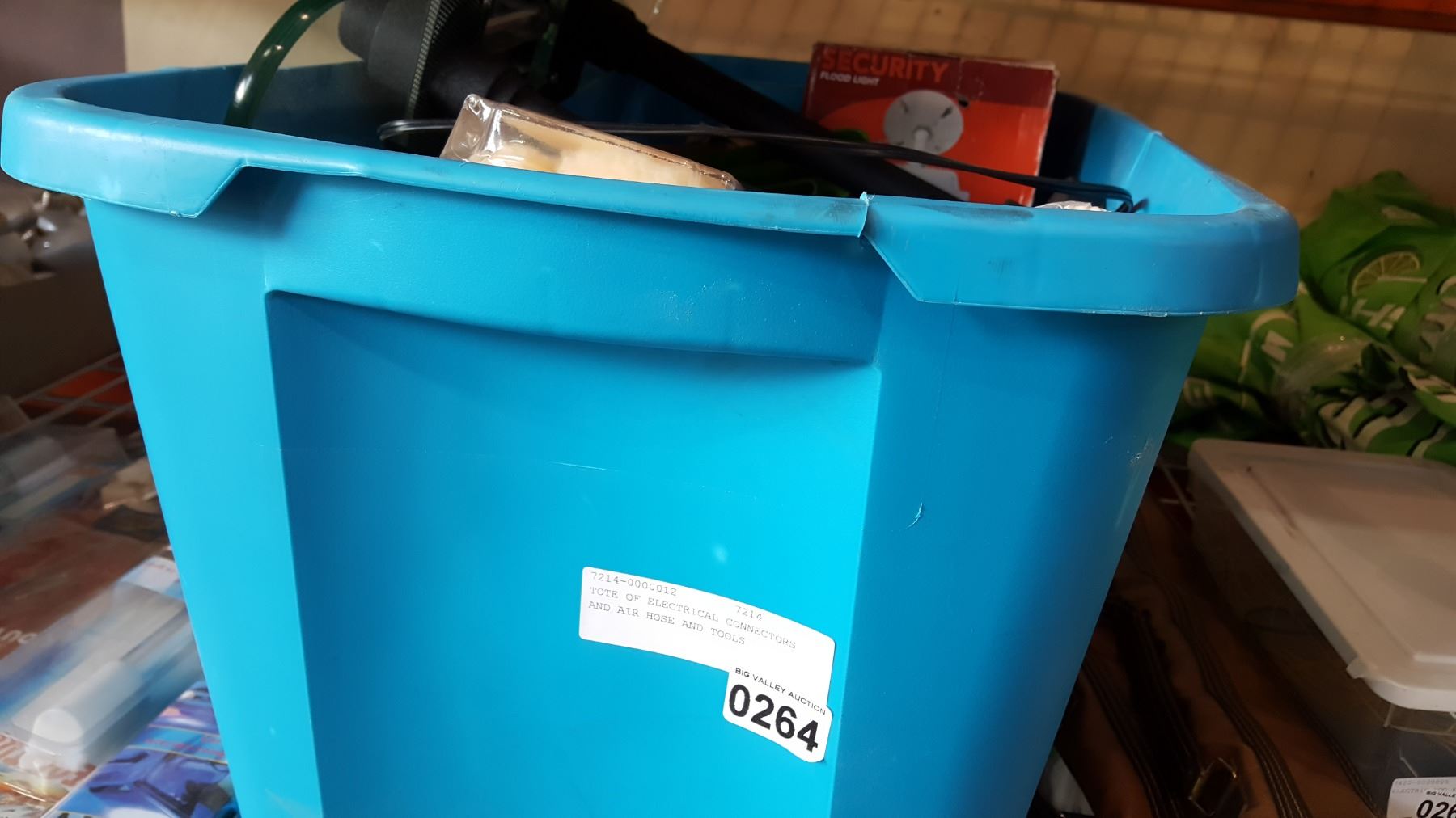TOTE OF ELECTRICAL CONNECTORS AND AIR HOSE AND TOOLS