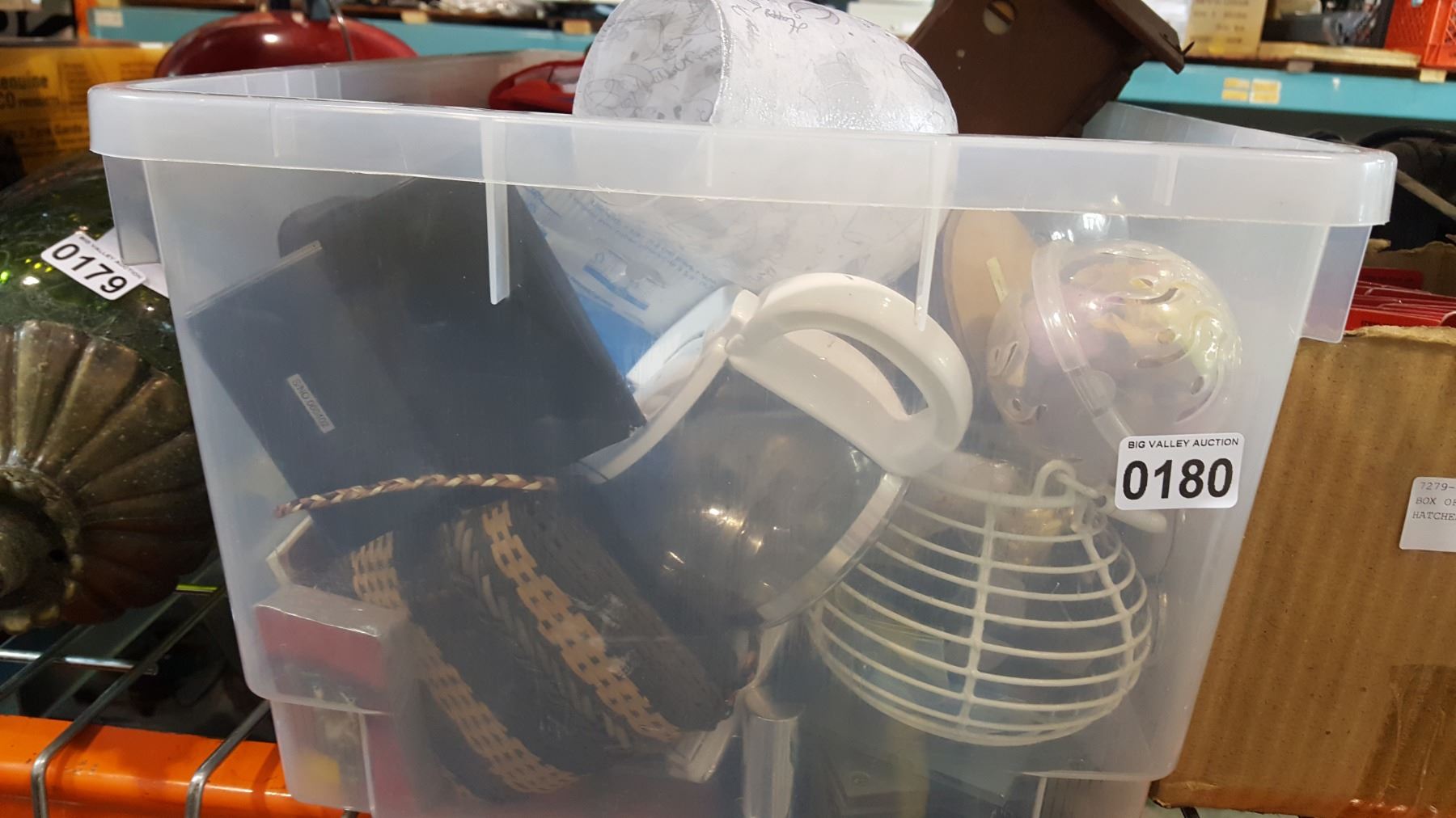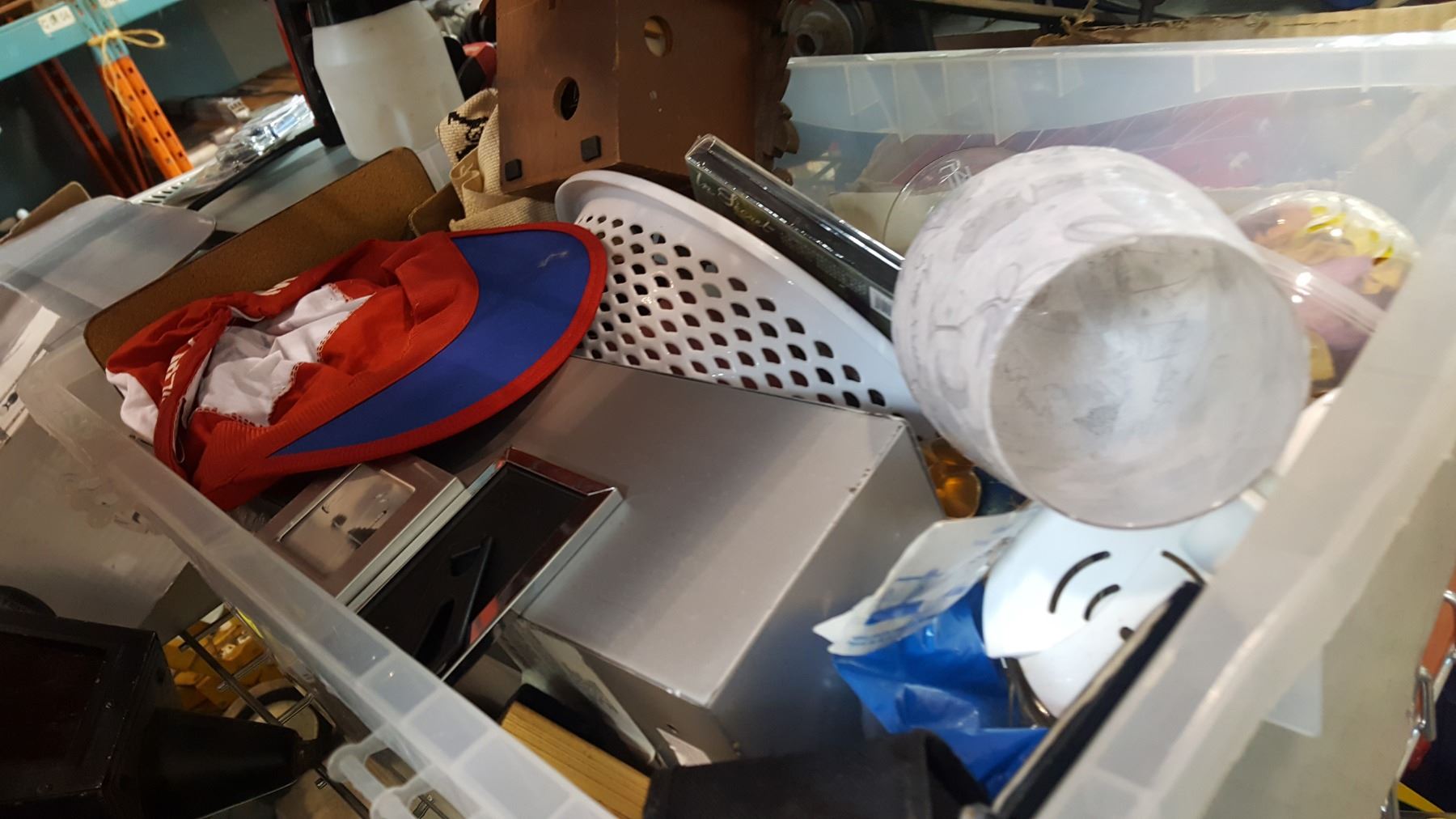 TOTE OF ESTATE GOODS, HARLEY DECOR, AND CLOCK