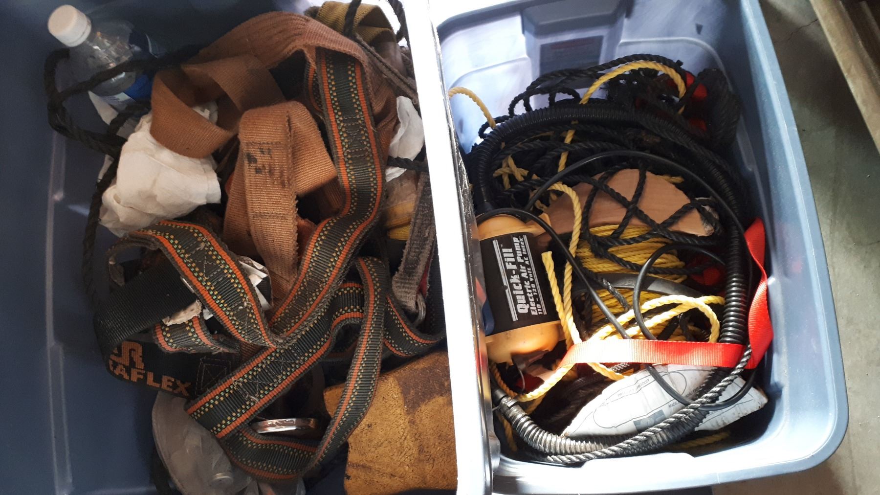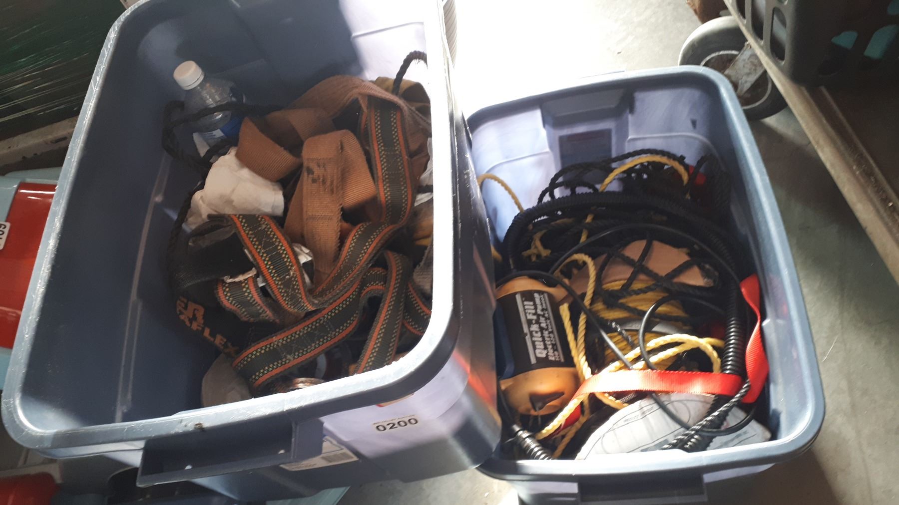 TOTE OF HARNESSES, TOOLS, AND TOTE OF ROPE