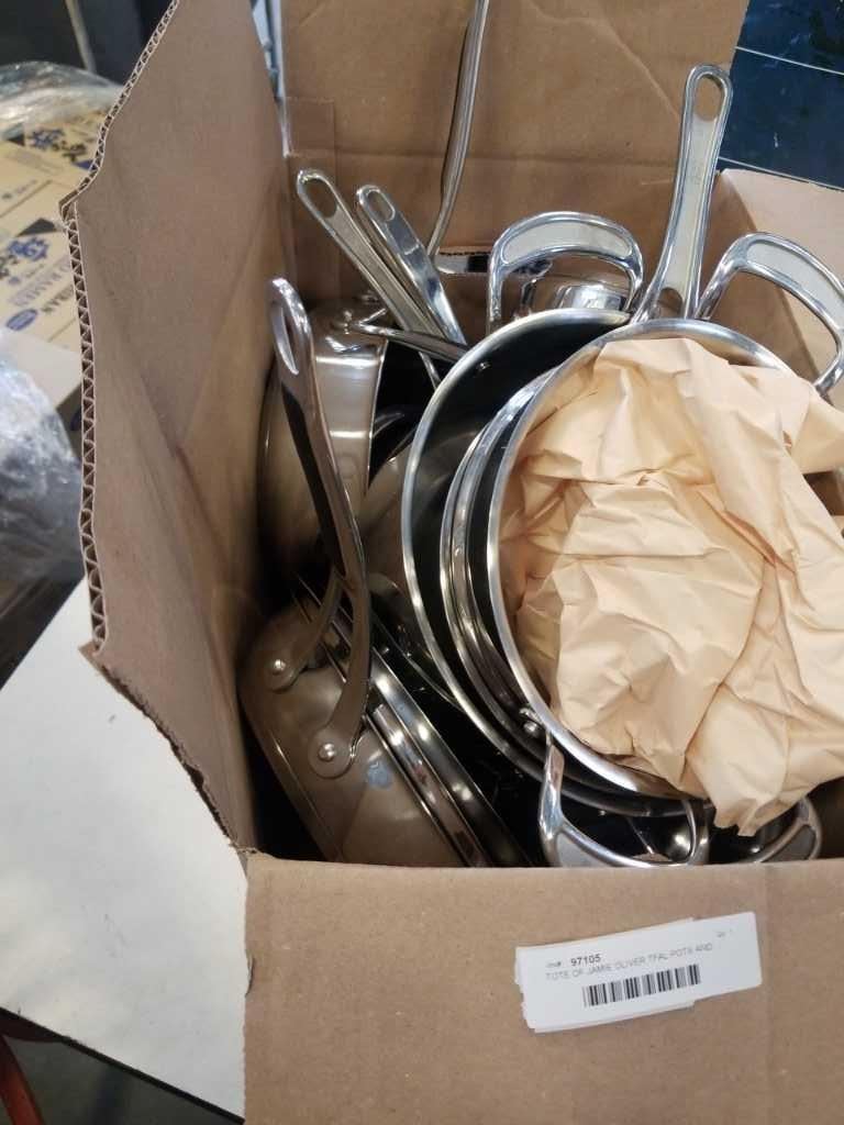 TOTE OF JAMIE OLIVER TFAL POTS AND PANS