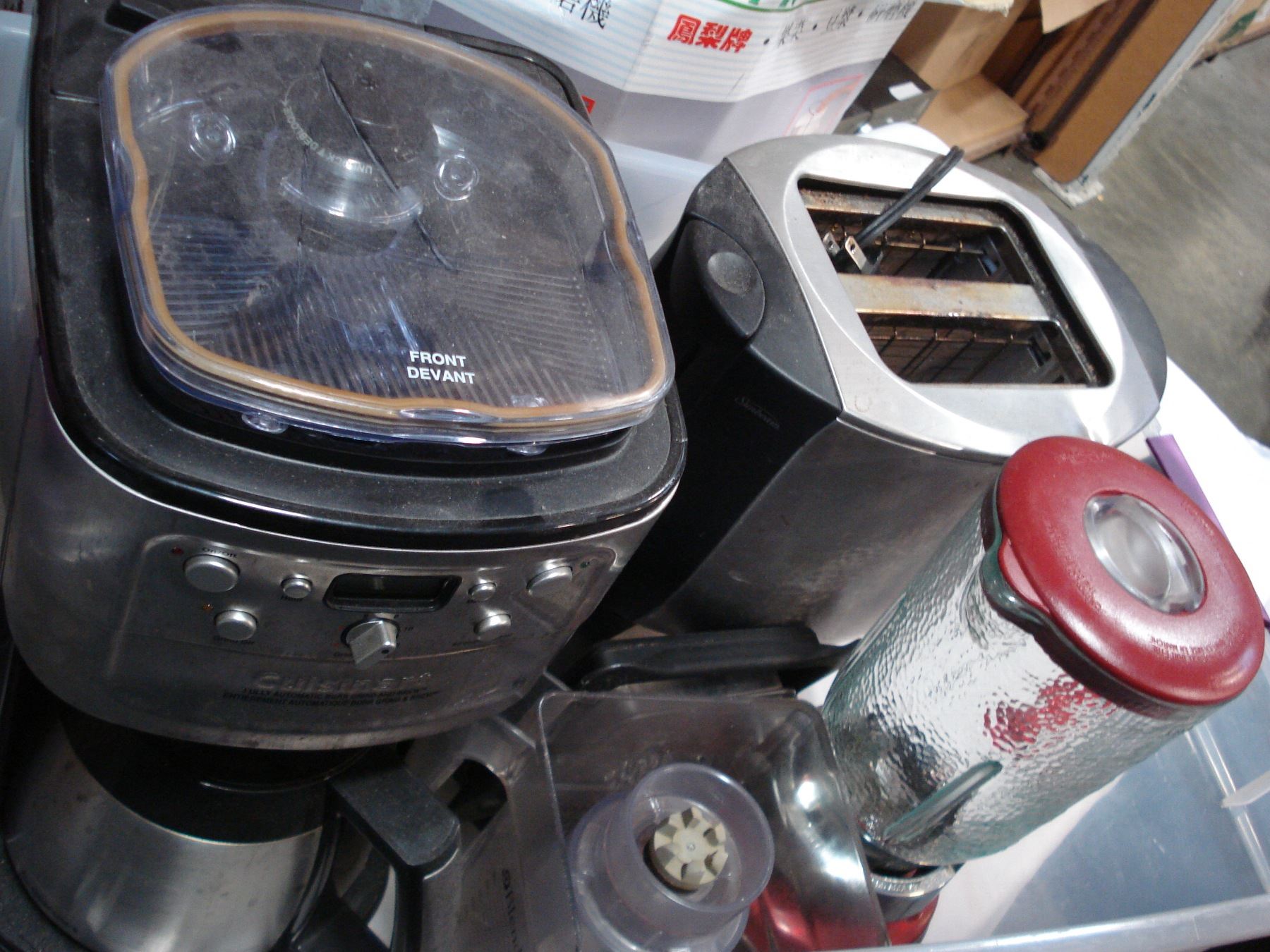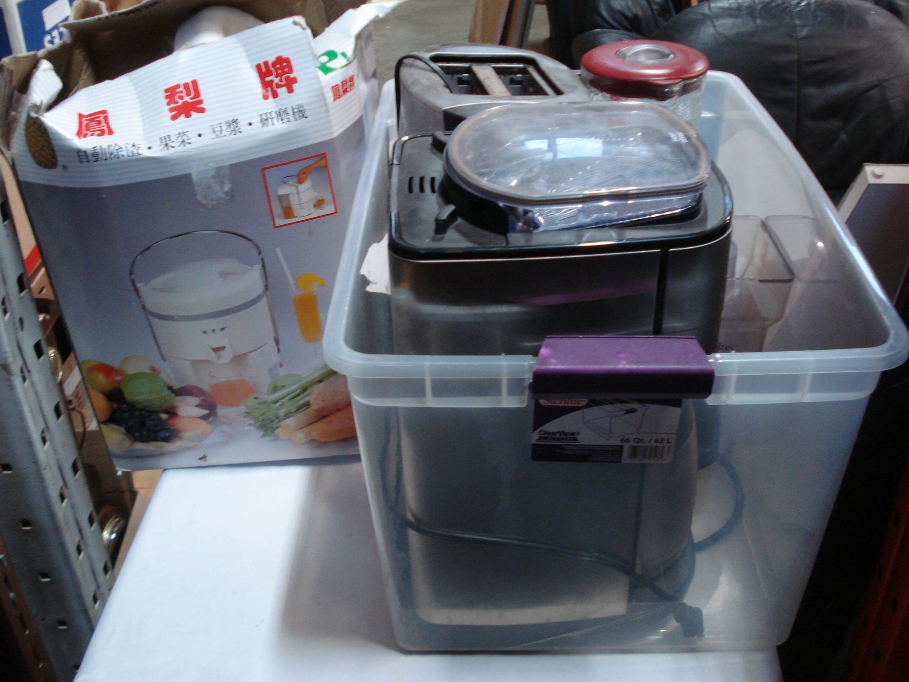 TOTE OF KITCHEN APPLIANCES, GRINDER, JUICER, AND MORE