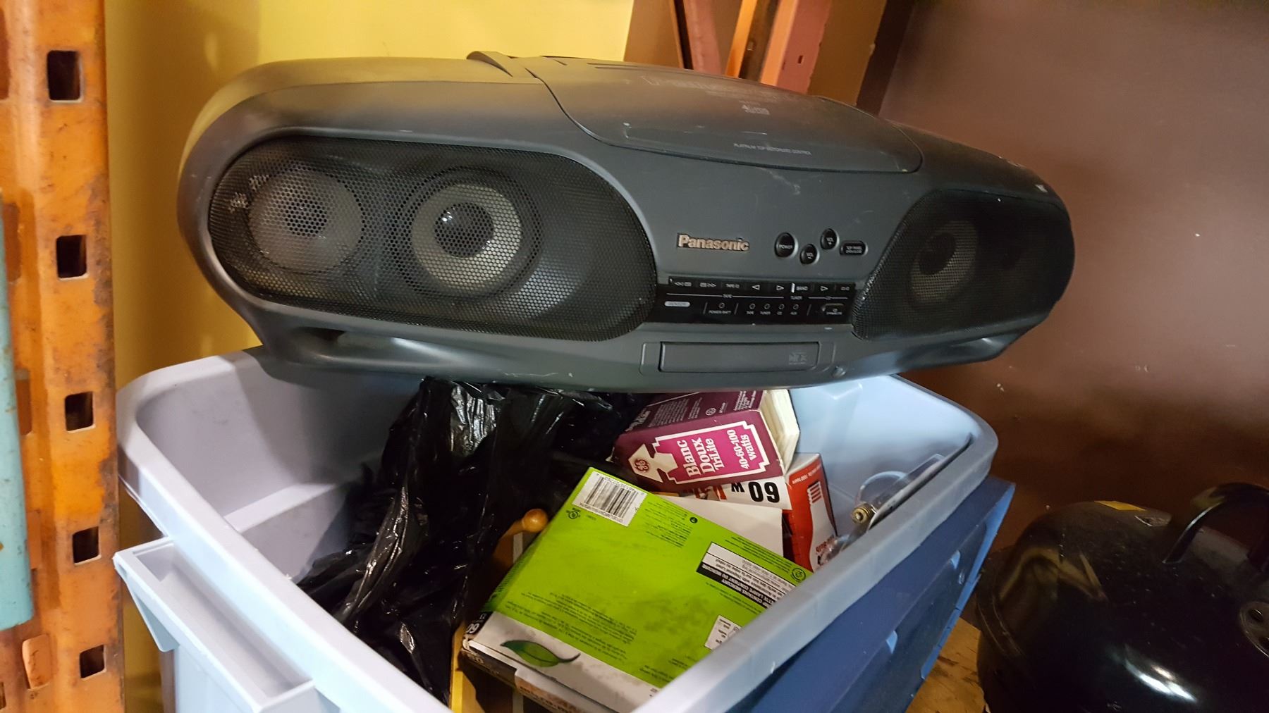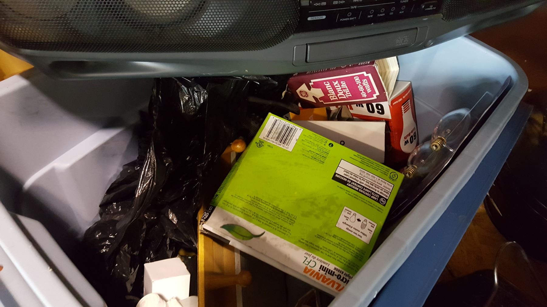 TOTE OF LIGHT BULBS TOOLS AND STEREO