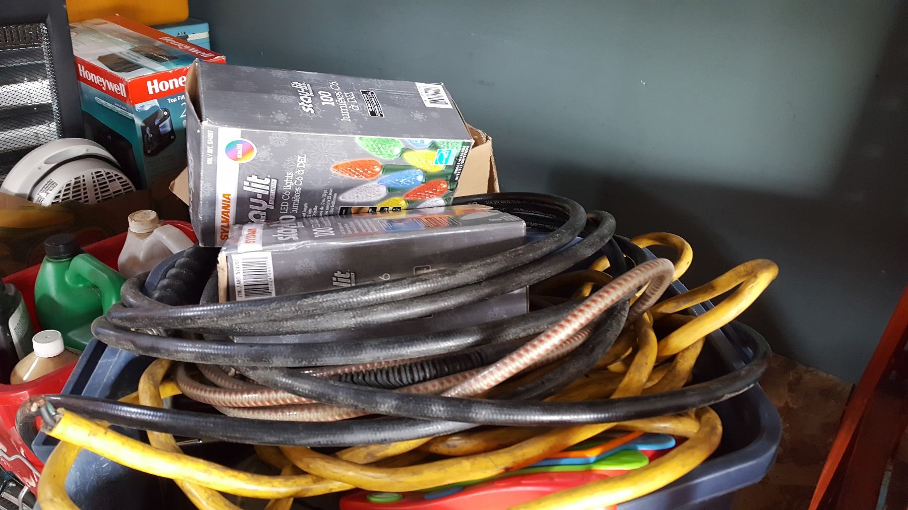 TOTE OF LIGHTS AND HOSES