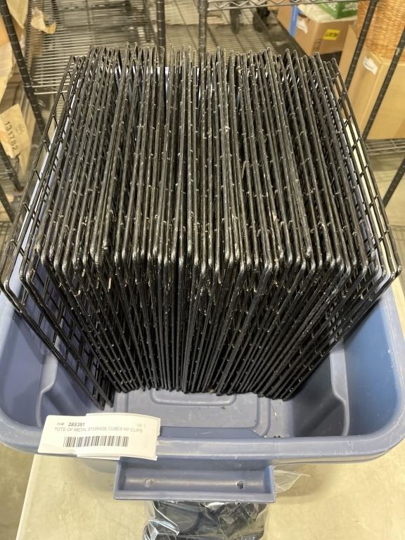 TOTE OF METAL STORAGE CUBES W/ CLIPS