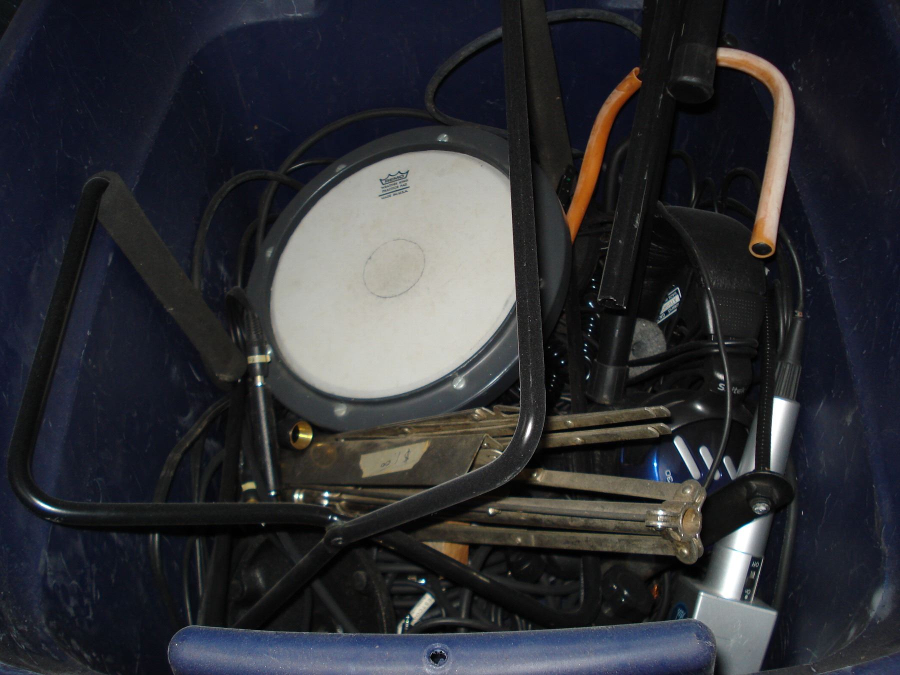 TOTE OF MICROPHONES AND GUITAR CORDS