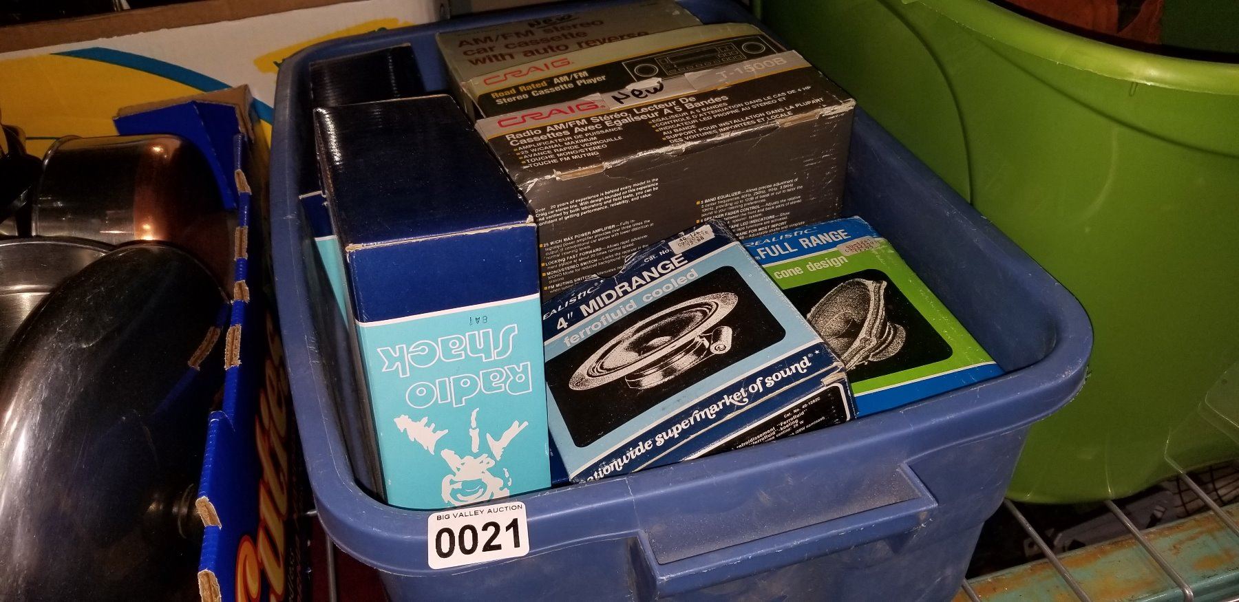 TOTE OF NEW SPEAKERS AND CAR AUDIO DECKS