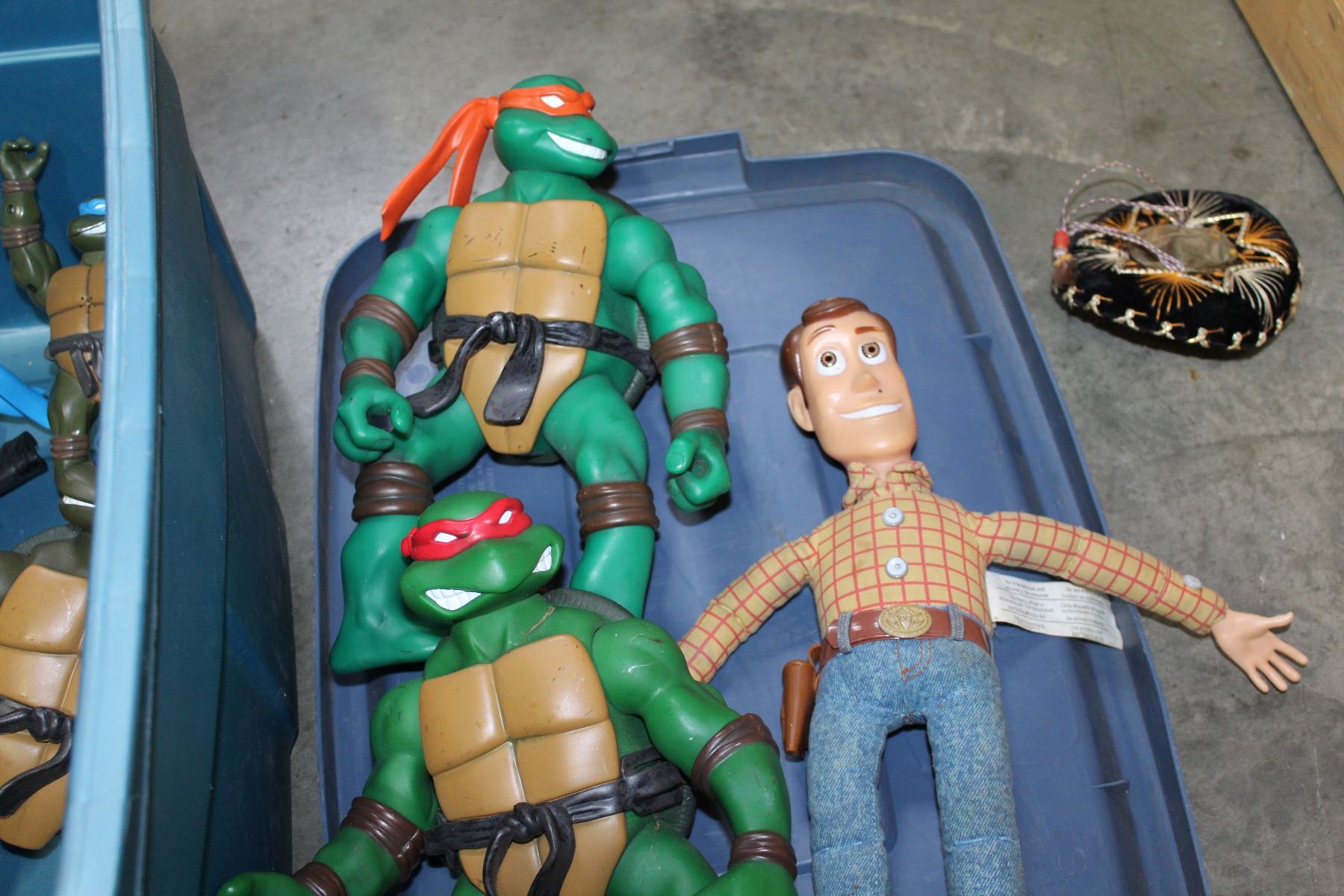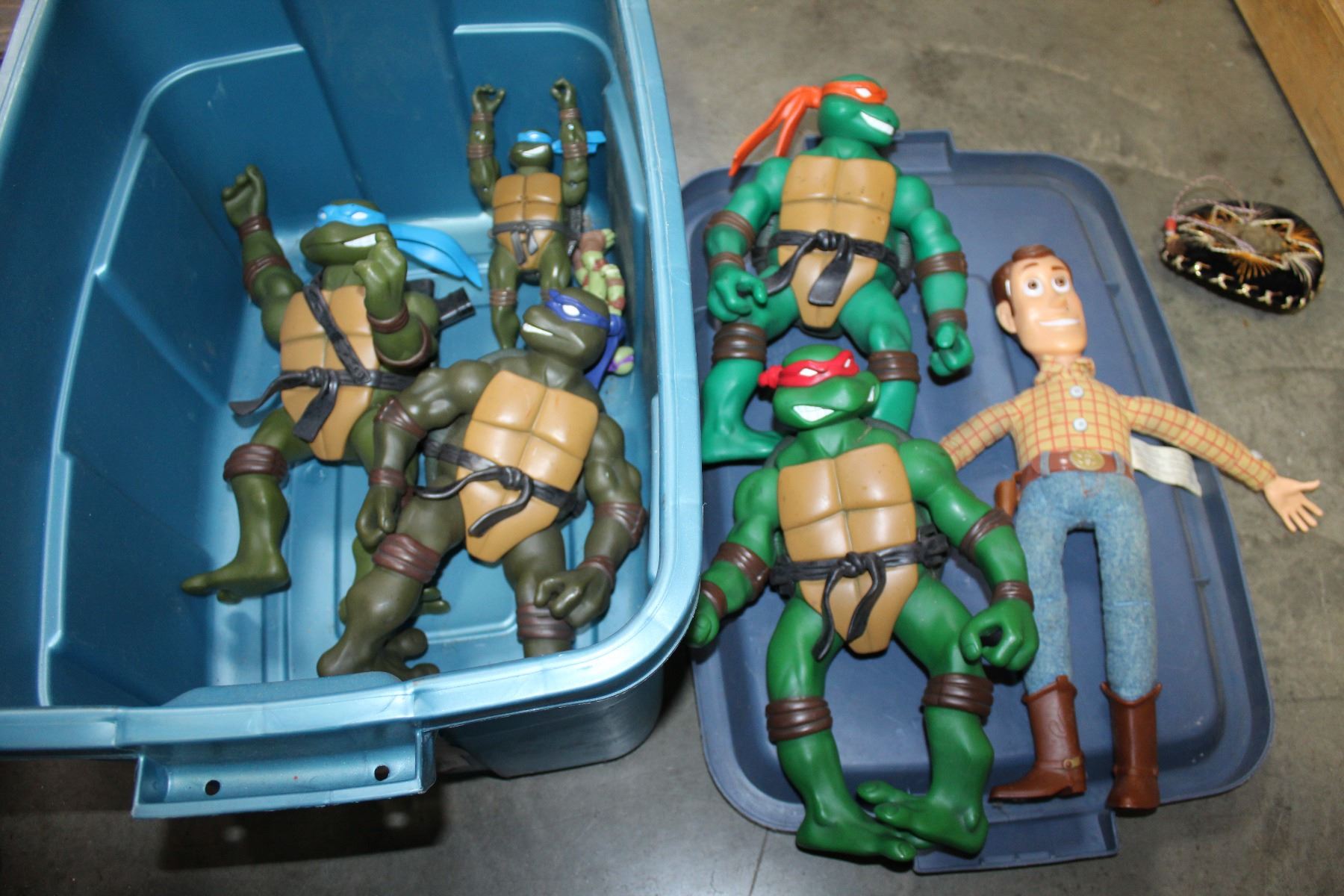 TOTE OF NINJA TURTLES AND WOODY TOY