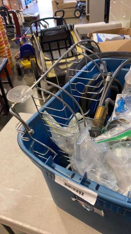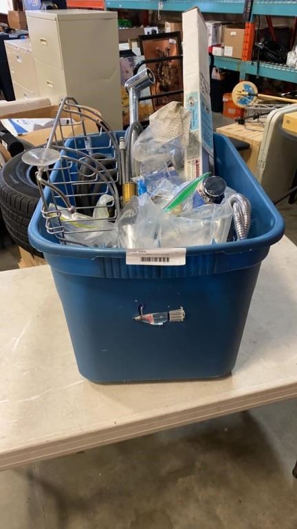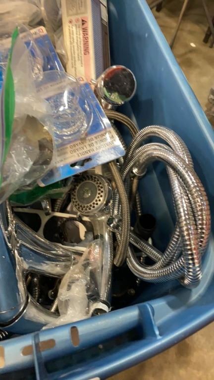 TOTE OF PLUMBING SUPPLIES AND ACCESSORIES