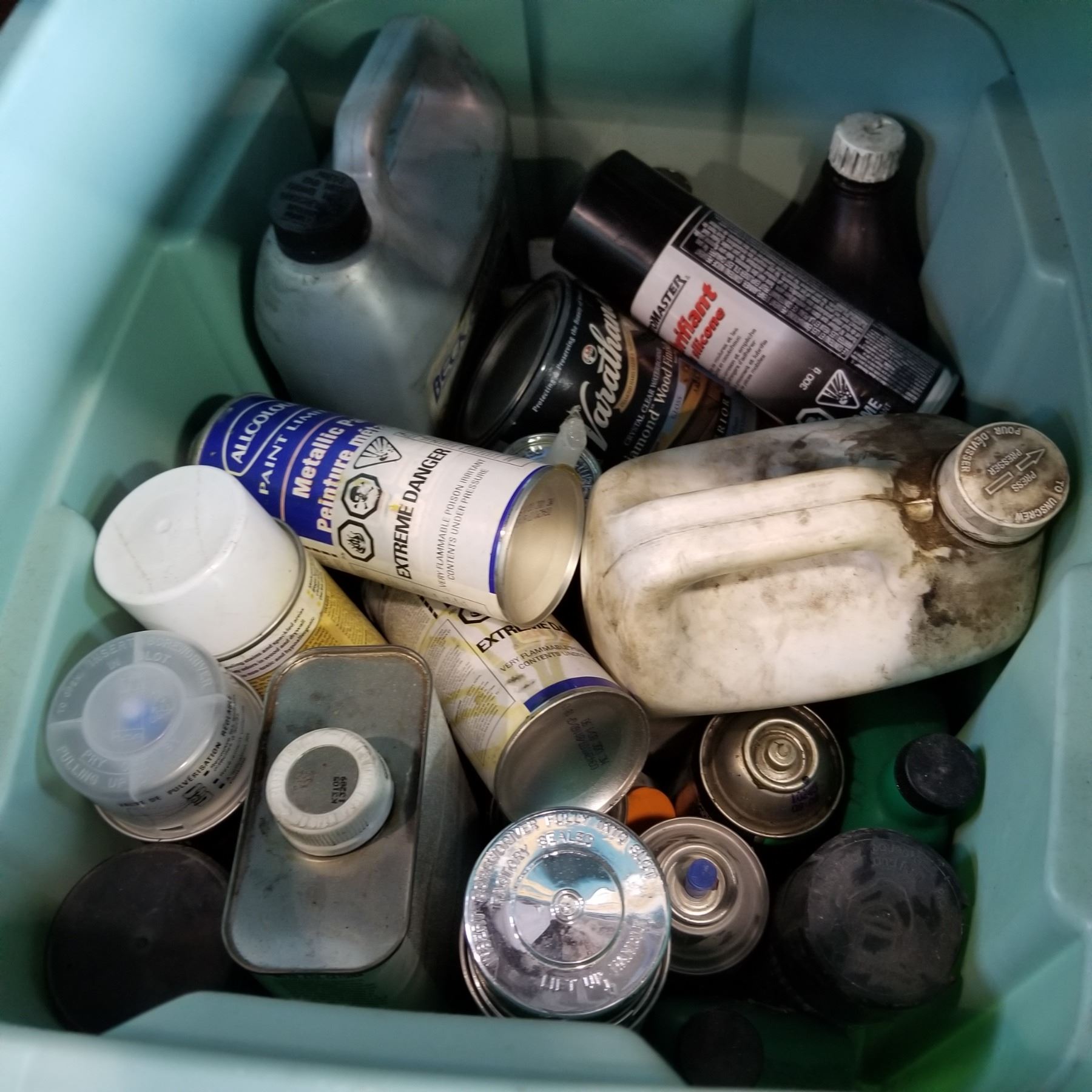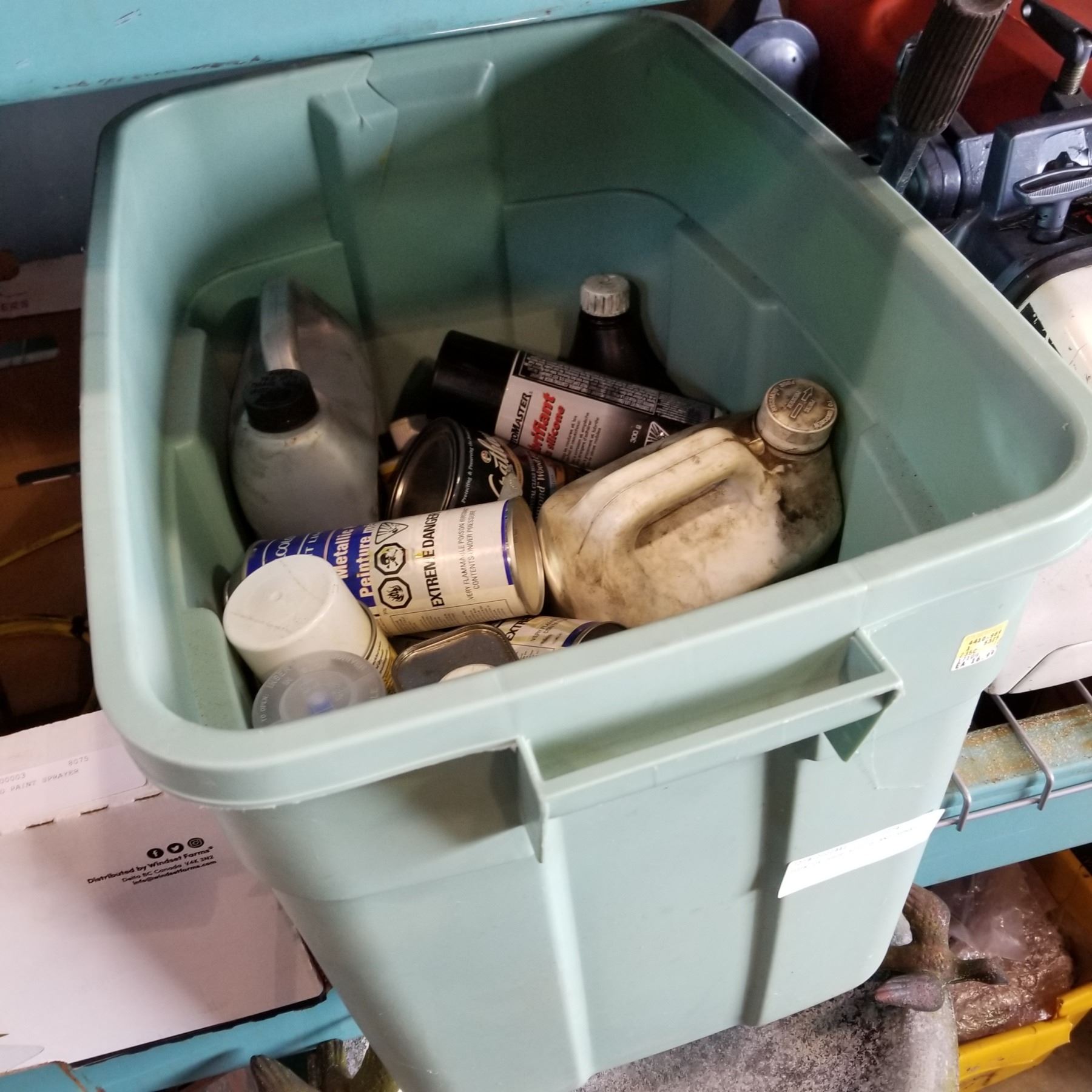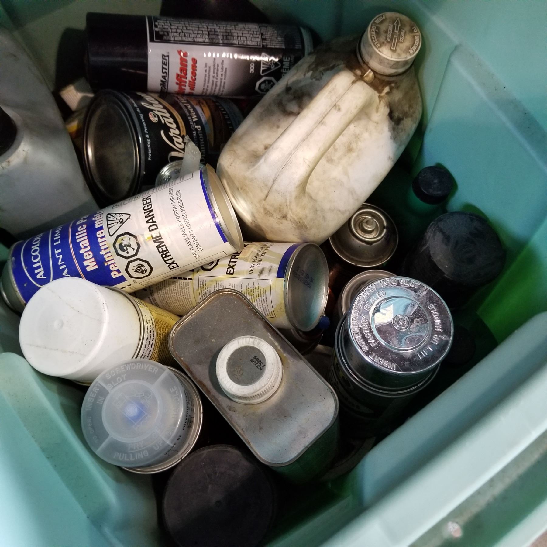 TOTE OF SHOP FLUIDS AND SPRAYS