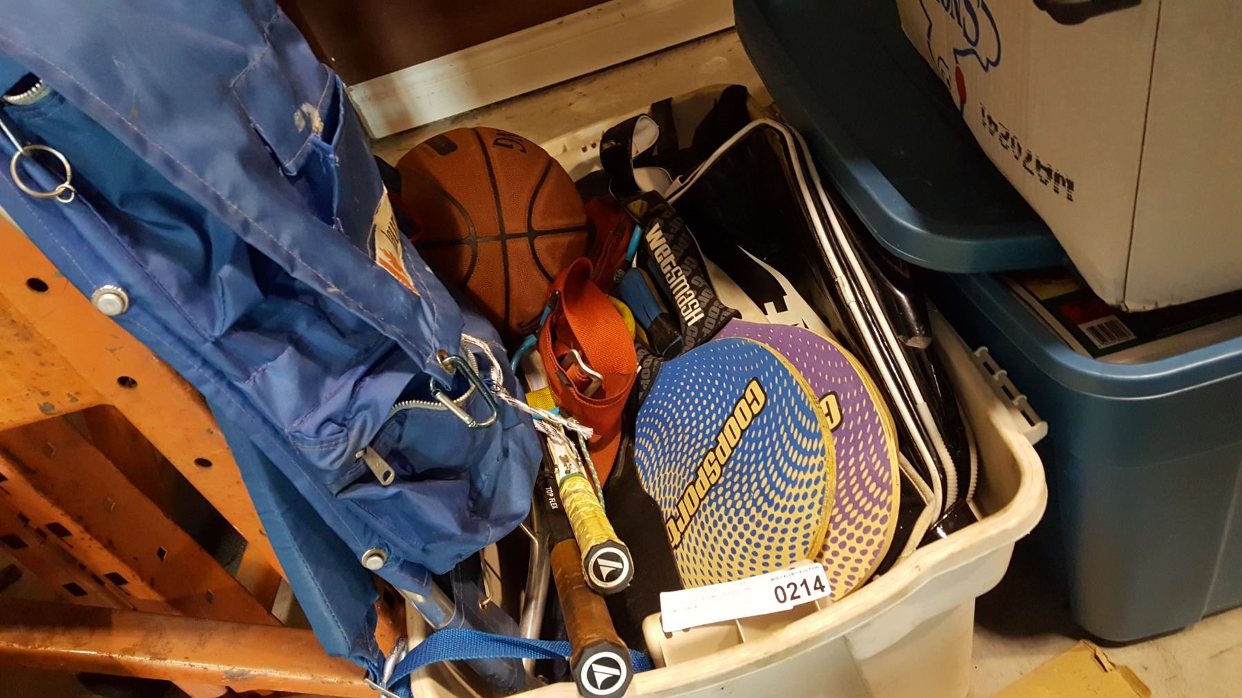 TOTE OF SPORTING GOODS AND FRAME PACK