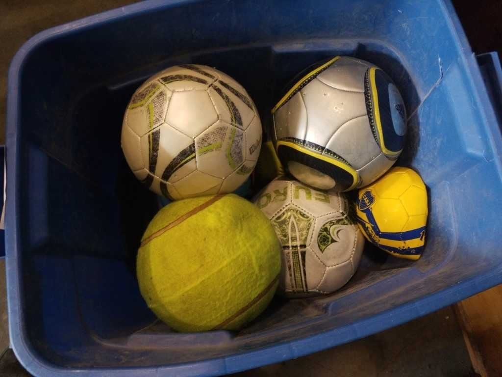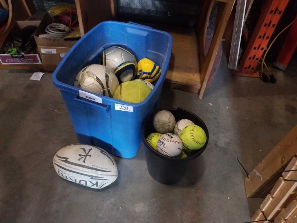 TOTE OF SPORTS BALLS, RUGBY BALL, SOCCER BALLS, SOFT BALLS, ETC