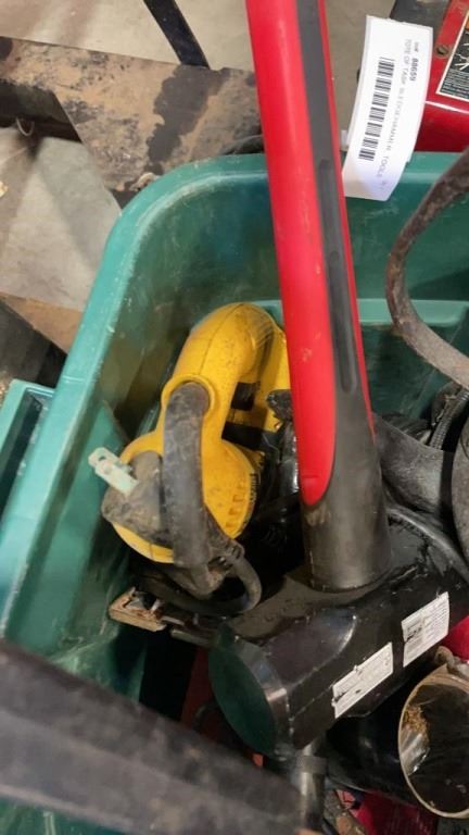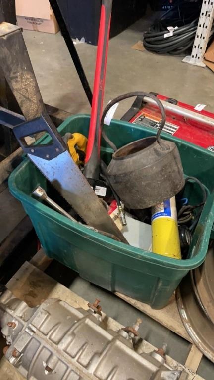 TOTE OF TASK SLEDGEHAMMER, TOOLS AND SHOP SUPPLIES