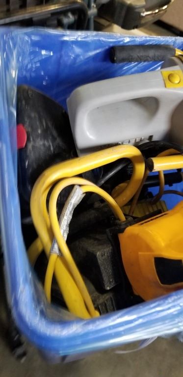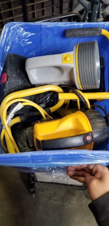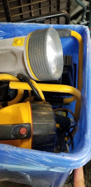 TOTE OF WORK LIGHTS AND FLASHLIGHTS