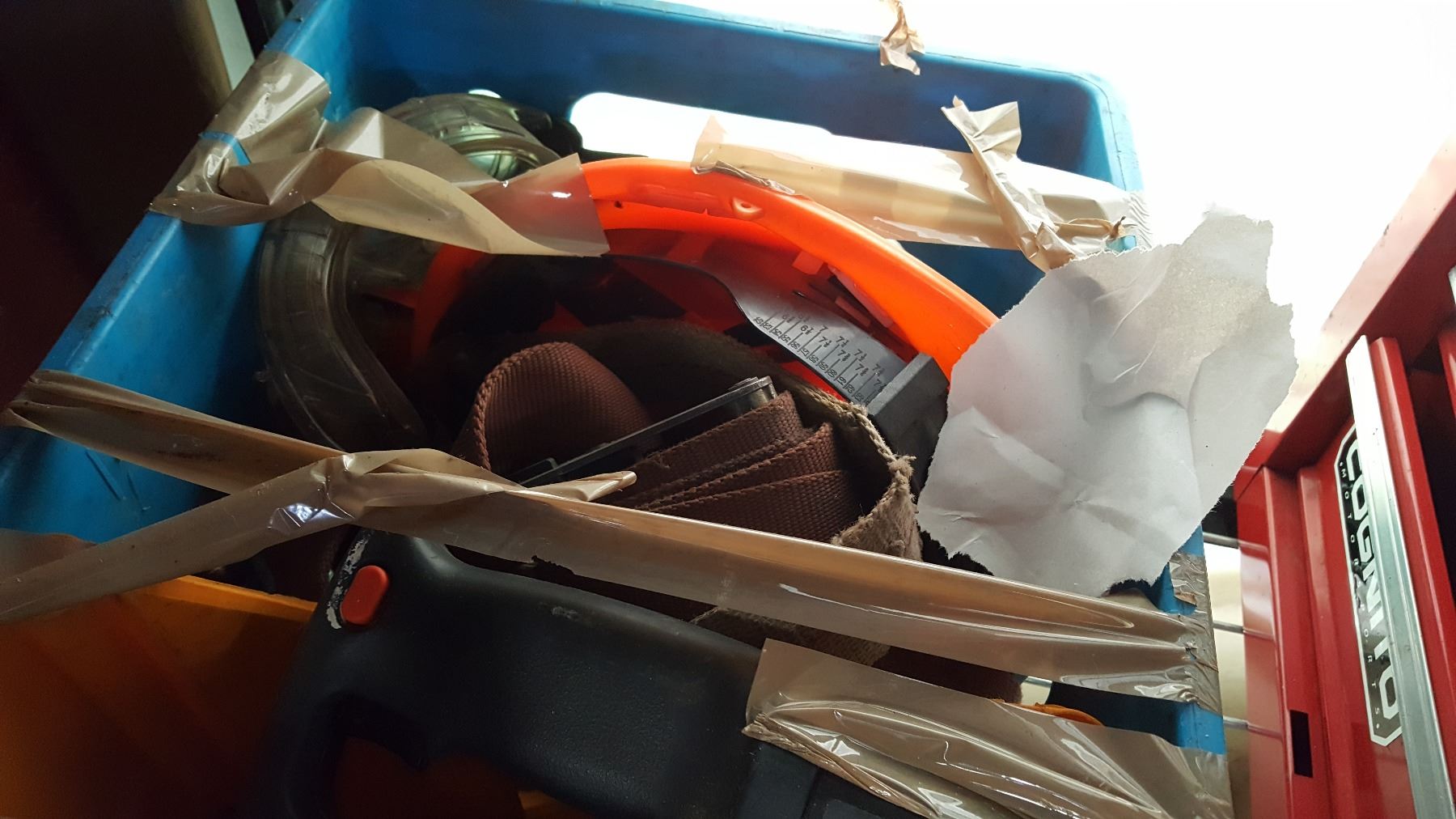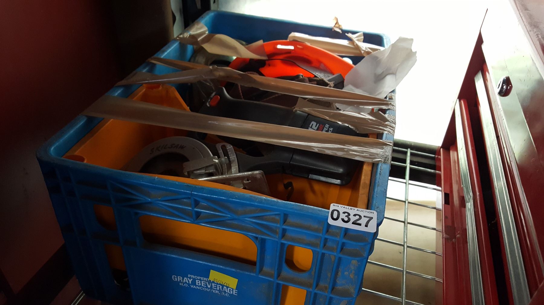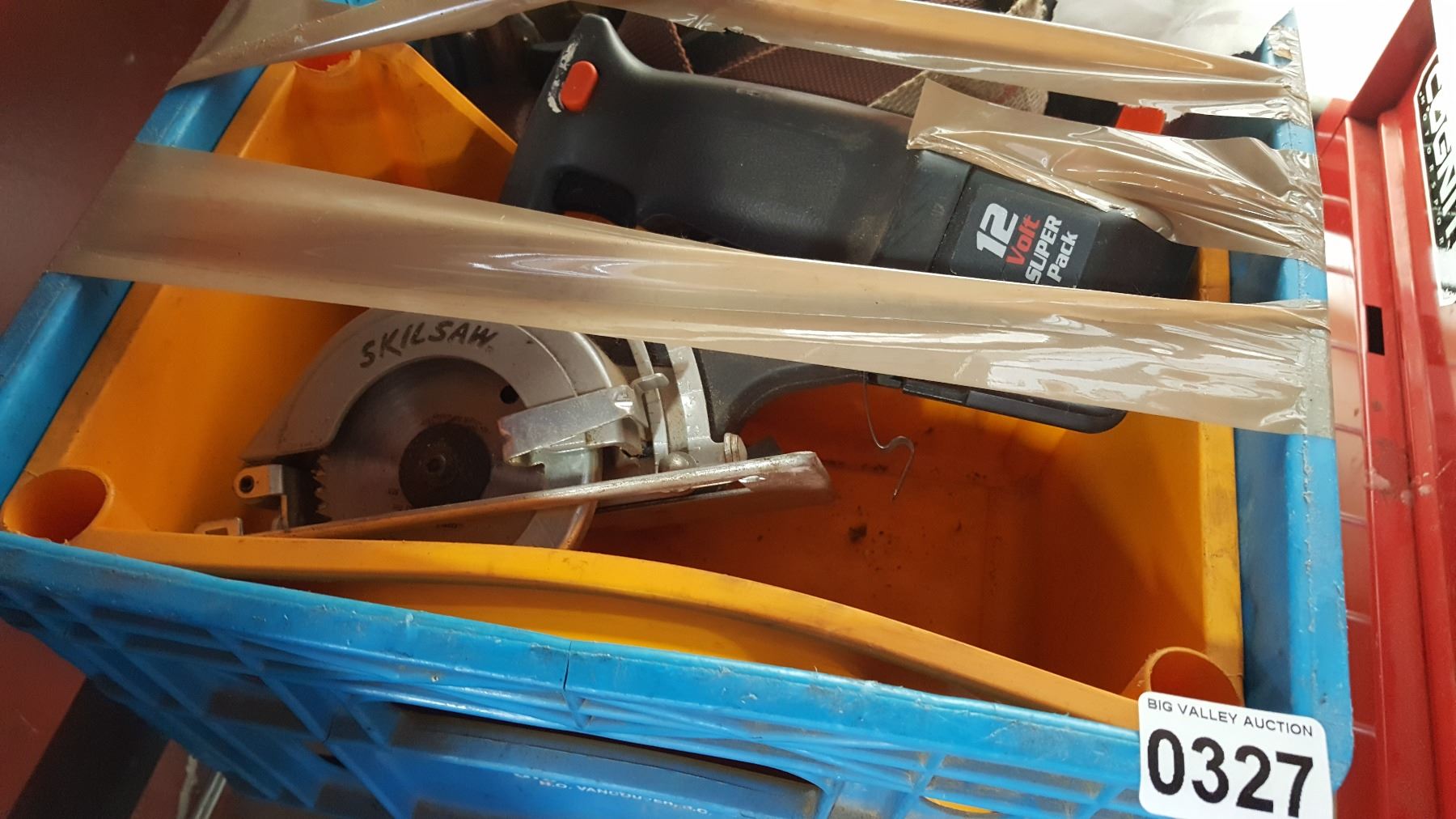 TOTE W/ CORDLESS SKIL SAW AND HARDHAT