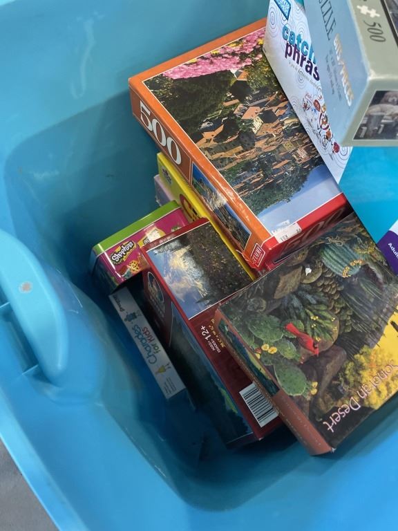 TOTE WITH ASSORTED PUZZLES