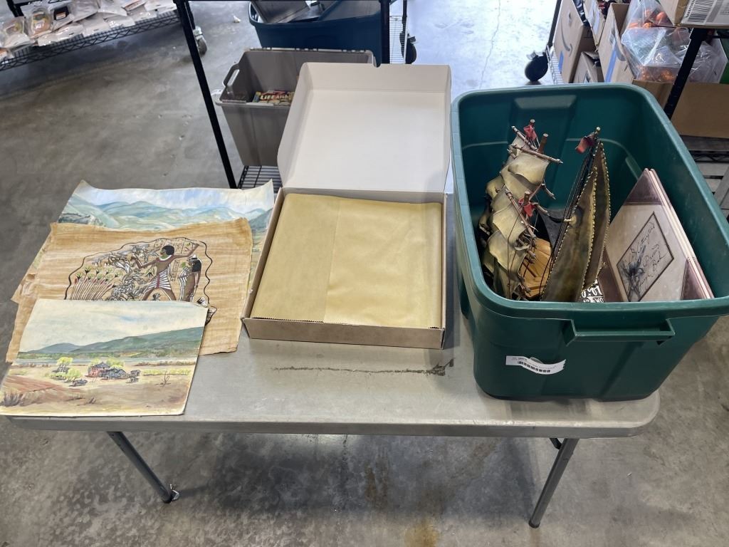 TOTE WITH DECOR ITEMS, PHOTO ALBUM AND HARDCOVER BOOK