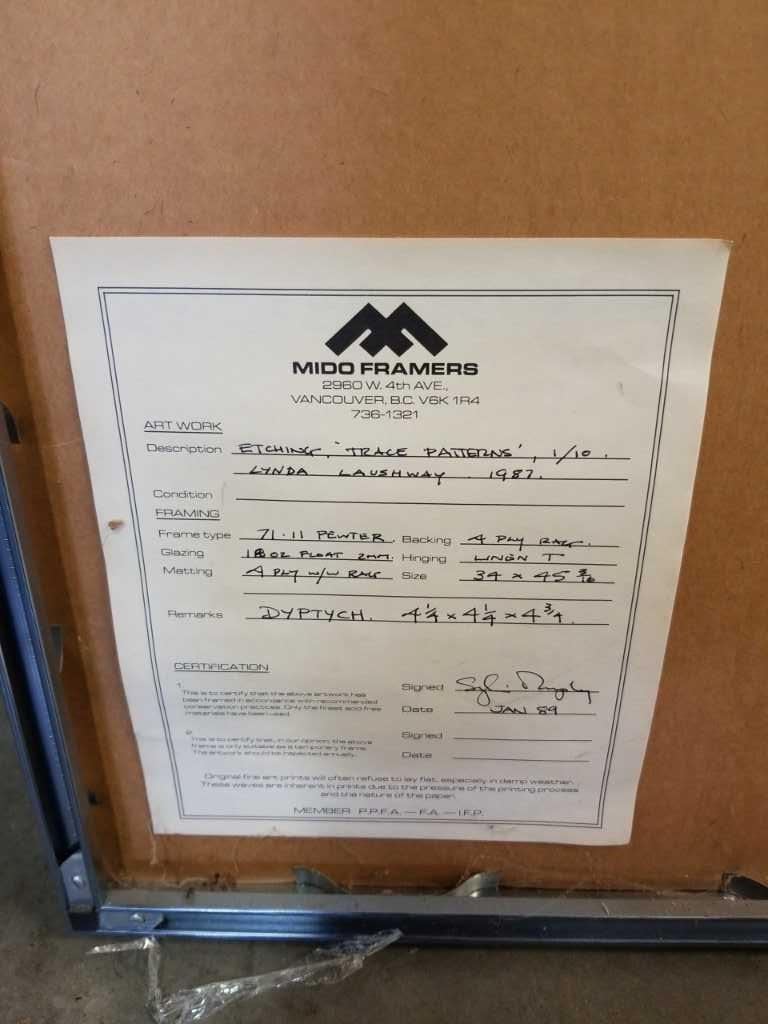 TRACE PATTERNS ETCHING BY LYNDA LAUSHWAY 1/10, GALLERY PRICE $2200