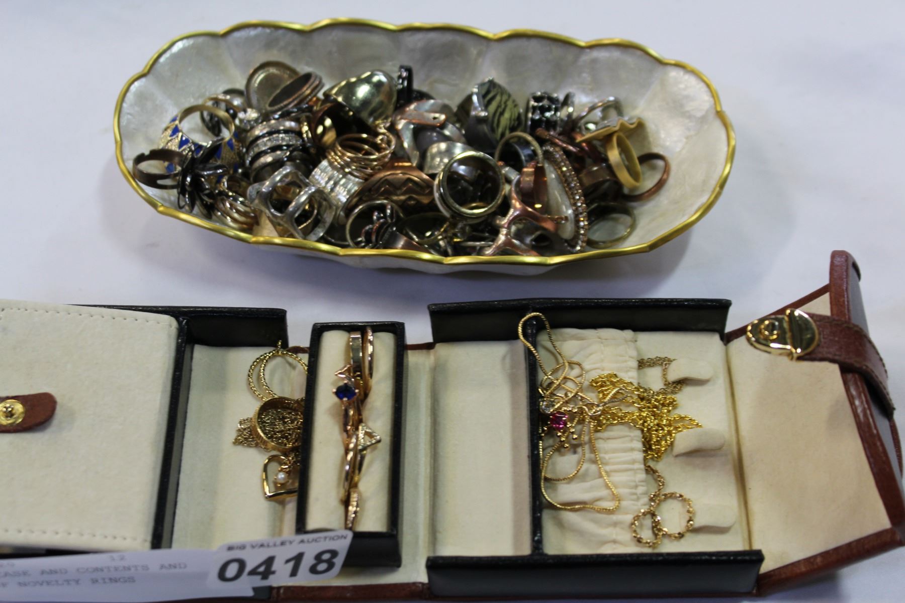 TRAVEL CASE AND CONTENTS AND SHELL OF NOVELTY RINGS