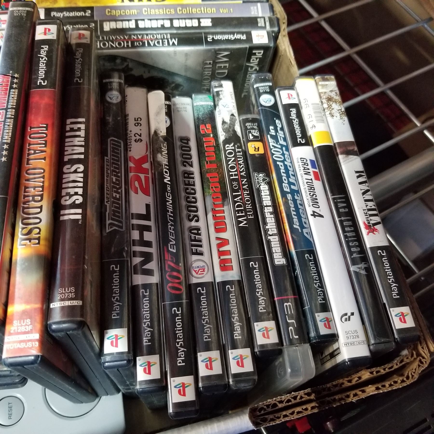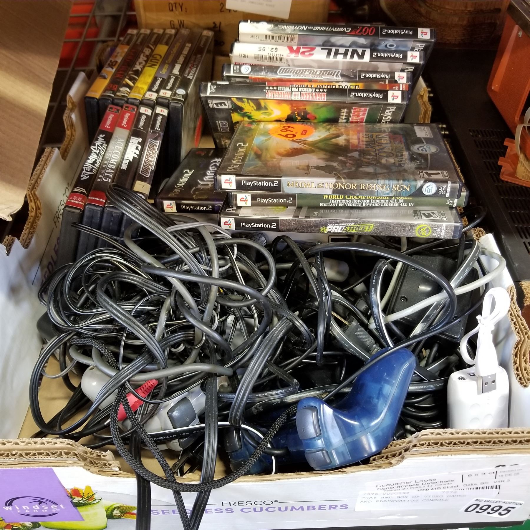 TRAY AND BOX OF VIDEO GAMES AND PLAYSTATION CONSOLE